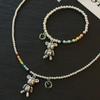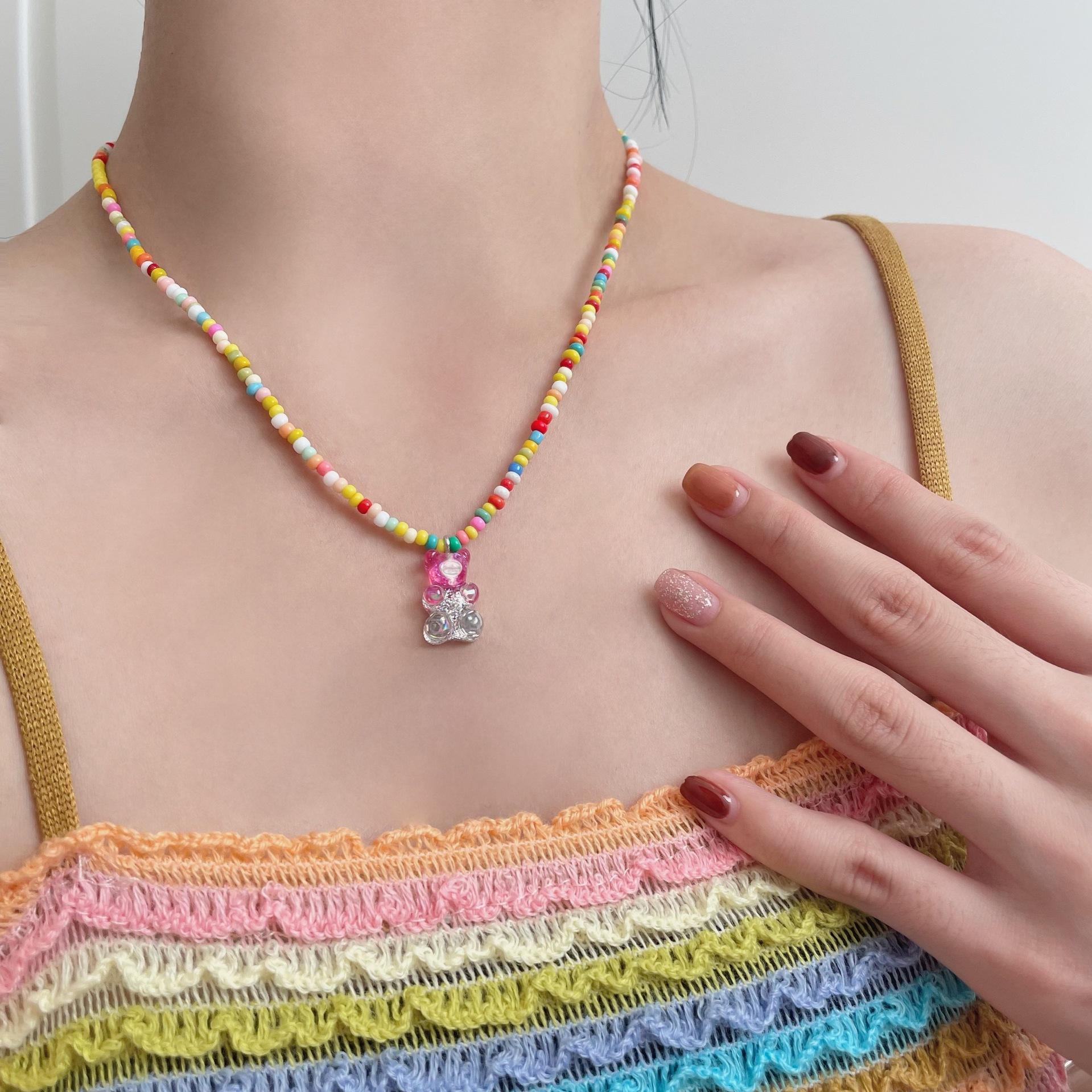 Collar con colgante de oso de goma de jalea arcoíris de plata esterlina S925, juego de dulces dopamínicos coloridos, cadena de clavícula de verano