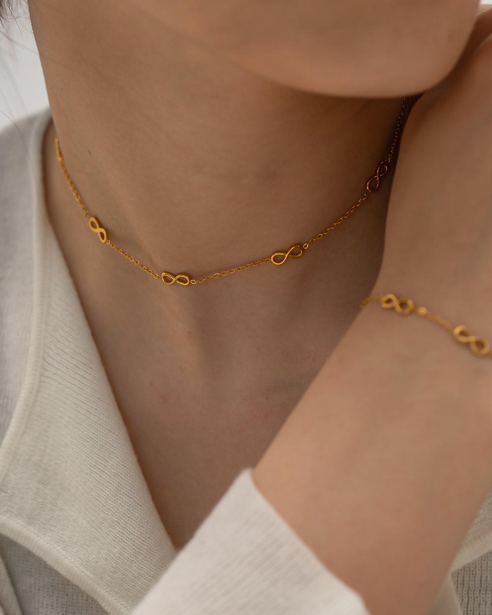 Collar estilo ins europeo y americano símbolo infinito collar fino pulsera transfronterizo versátil acero de titanio collar de joyería que no se desvanece