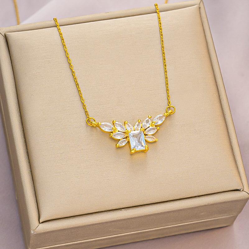 Cadena de clavícula con diamantes grandes, elegante y brillante, transfronteriza entre Europa y América, collar de acero de titanio a la moda, simple y combinable, venta al por mayor de fábrica