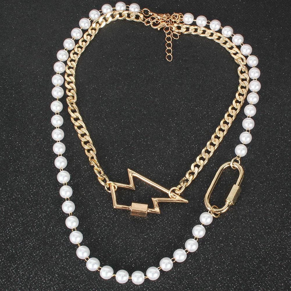 Collar con colgante de rayo de aleación, estilo europeo y americano, personalizado, estilo retro, con cadena de clavícula de perlas de imitación, para mujer (14910)