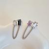Anillo de Diamantes Cuadrado de Cadena con Sentido del Diseño Nicho para Mujer Estilo Frío Anillo para Dedo de Comida Celebridad de Internet Elegante a la Moda Anillo Simple