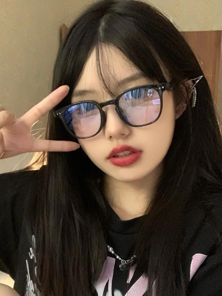 Gafas de miopía con montura negra pequeña GM vintage para mujer, con protección contra el viento, la luz azul y la radiación, con efecto de maquillaje y montura que cambia de color.
