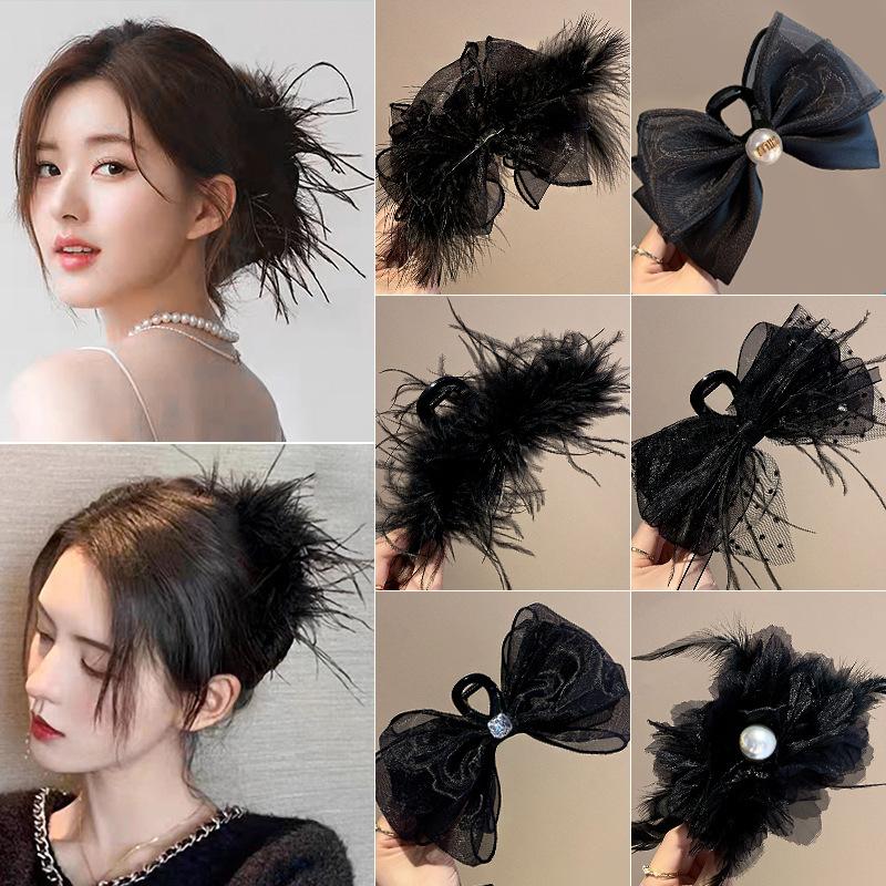 Clip de pluma, lazo de alta gama, clip para el cabello, moda, nuevo temperamento de celebridad de Internet, clip de tiburón, accesorio para el cabello en la parte posterior de la cabeza, venta al por mayor