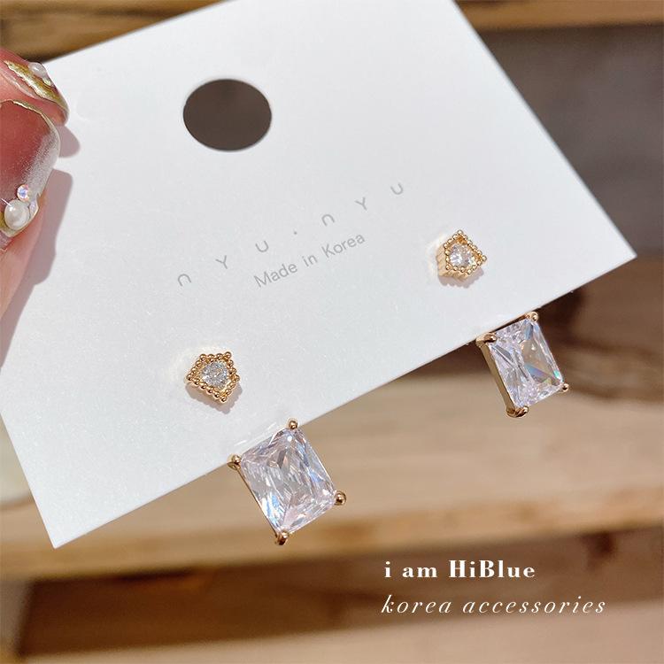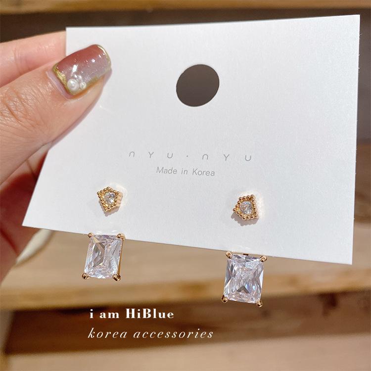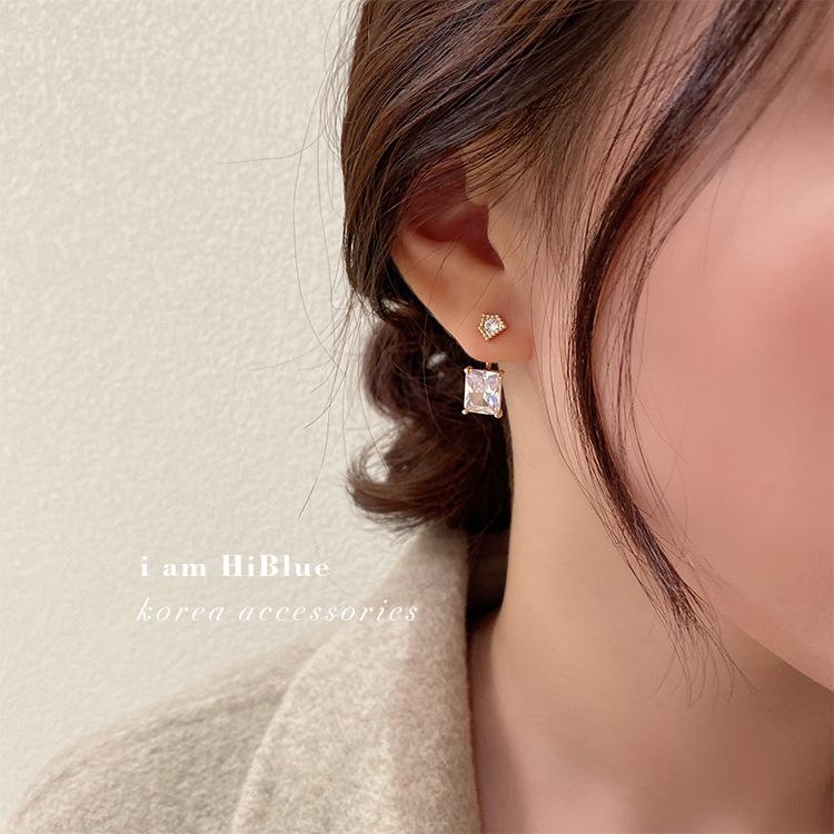 Corea Dongdaemun Aguja de Plata s925 Aretes Colgantes Traseros de Cristal Cuadrado Pedrería Aretes Elegantes Joyería para Mujer Venta al por Mayor