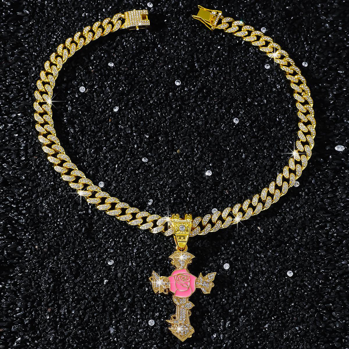 Colgante de mariposa tridimensional con diamantes de marca de baile callejero de hip-hop, moda europea y americana, cadena ancha versátil punk, accesorios de cadena cubana