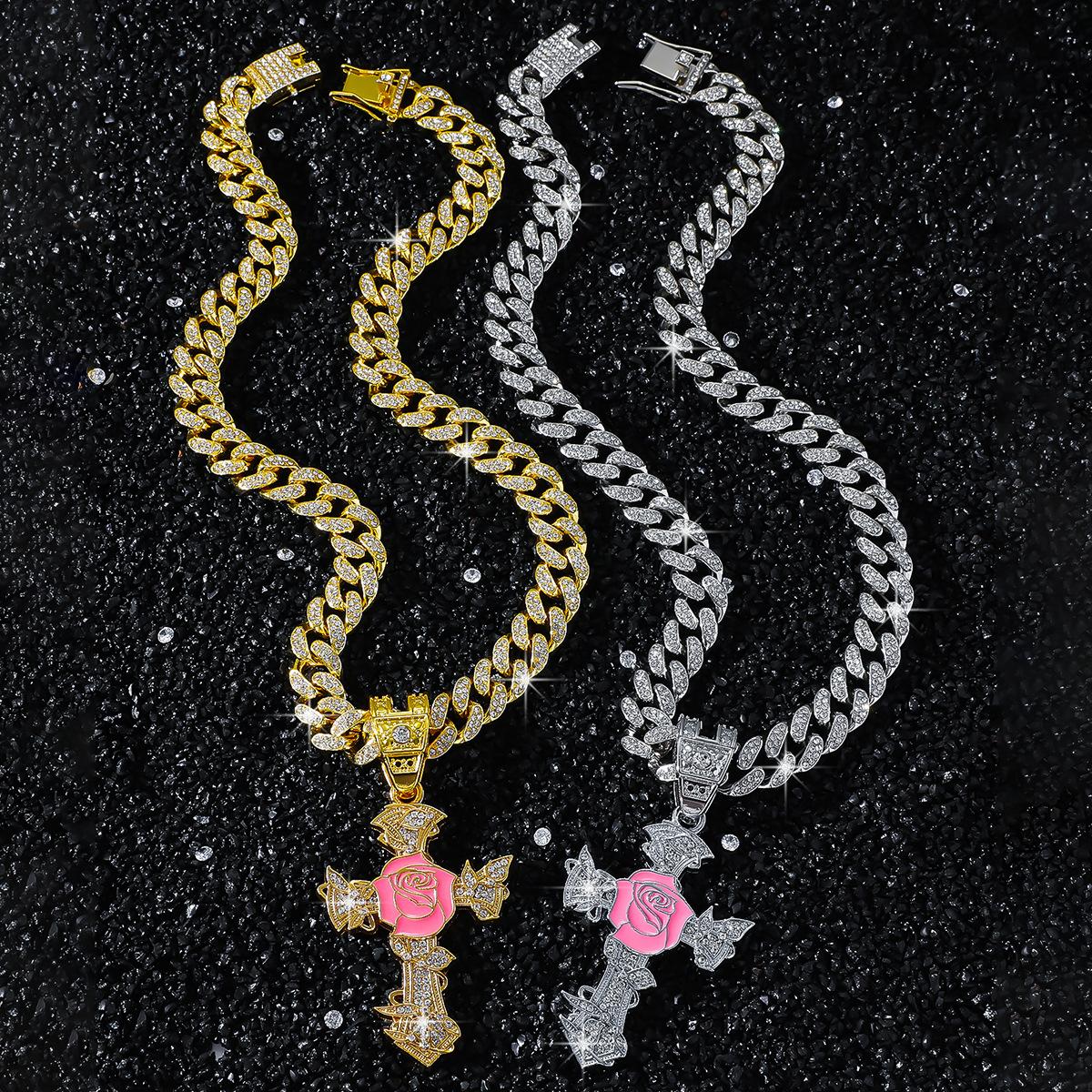 Collar dominante para hombre con colgante de letra de diamante completo, cadena cubana ancha, estilo hip hop, hip-hop, baile callejero europeo y americano