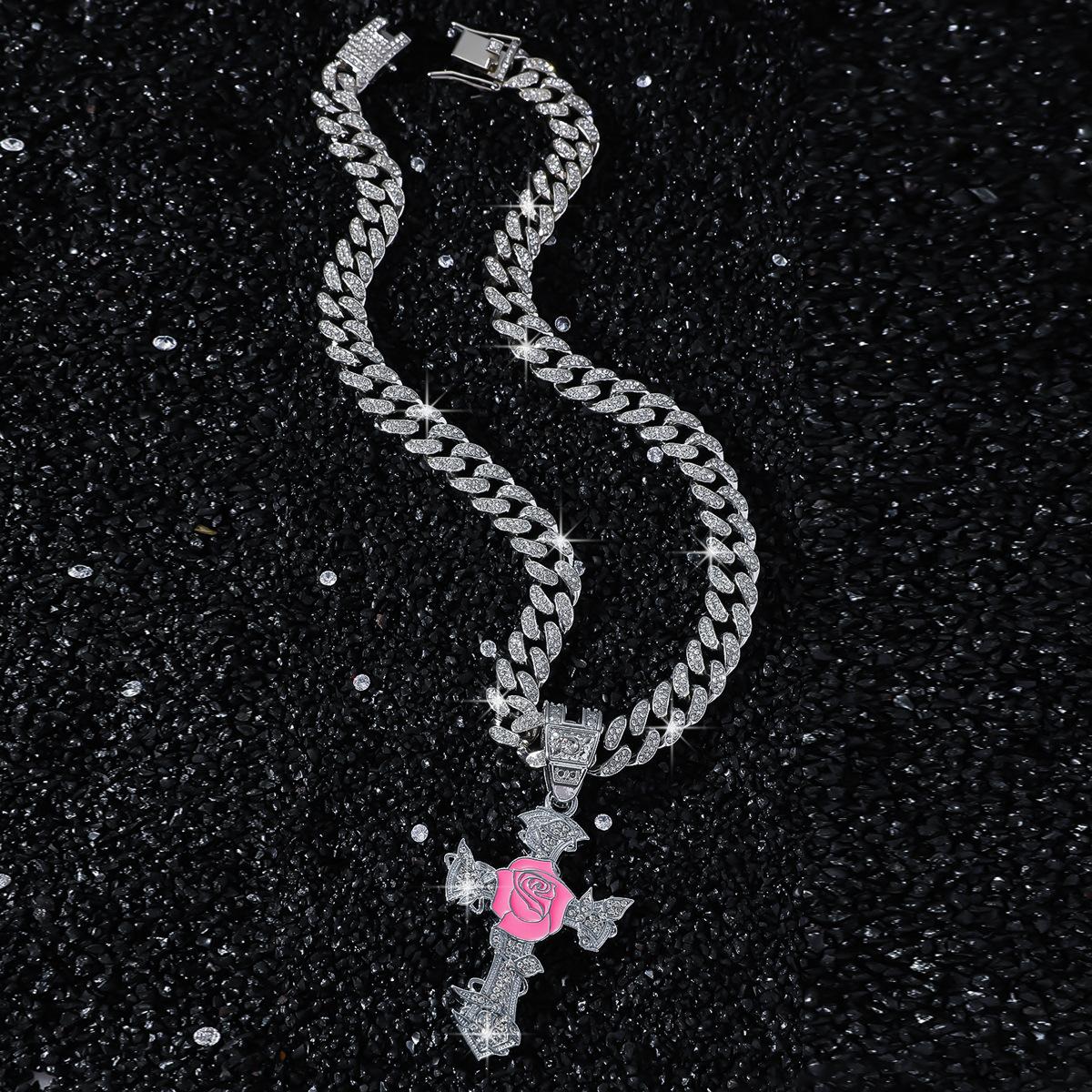 Collar de cadena cubana con colgante de 1000 puntas de diamante completo para hombre, estilo hip-hop europeo y americano, estilo dominante digital, accesorios de calle de moda