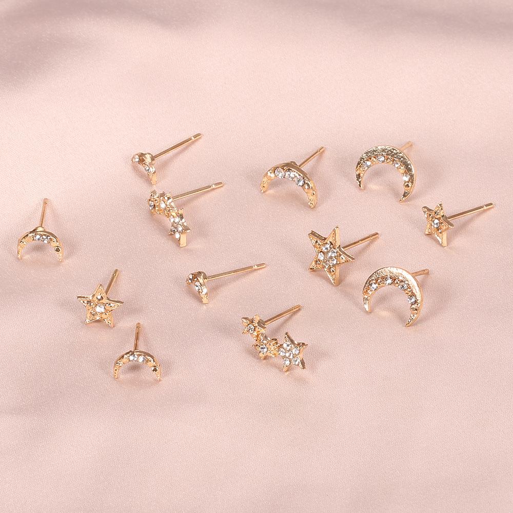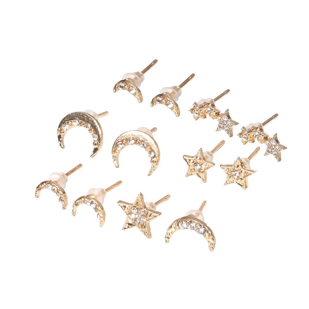 Joyería transfronteriza Europa y Estados Unidos viento estrellas luna diamante 6 pares pendientes pendientes