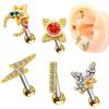 Fabricante de pendientes de plata 925 con incrustaciones de diamantes chapados en oro real, piercing para oreja, aguja para oreja femenina alrededor de la aurícula, pendiente diagonal, venta al por mayor