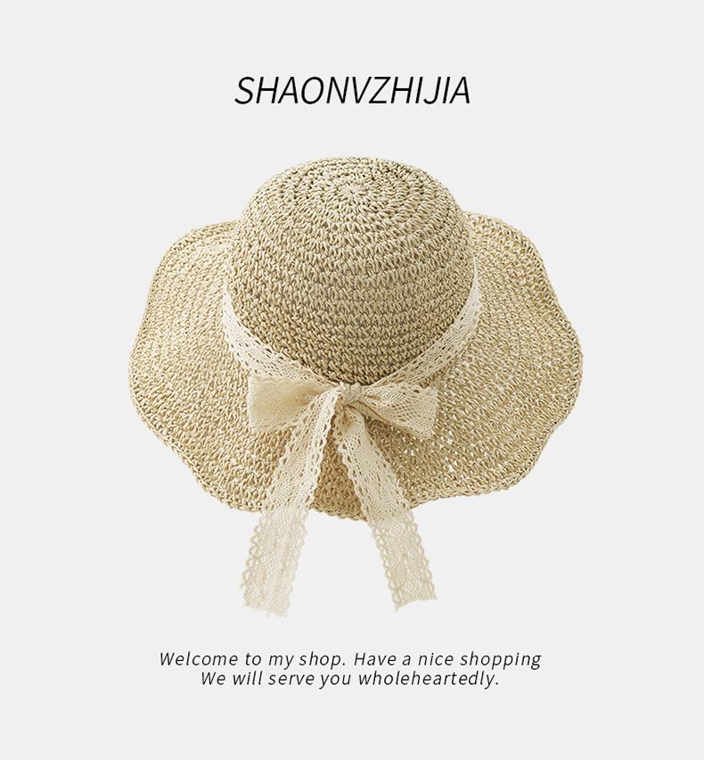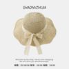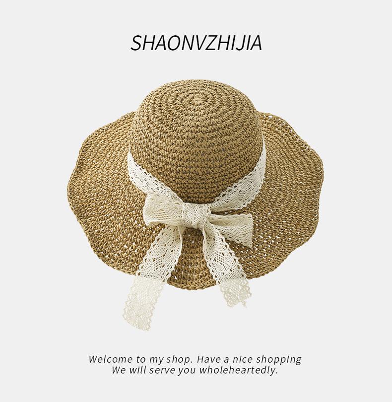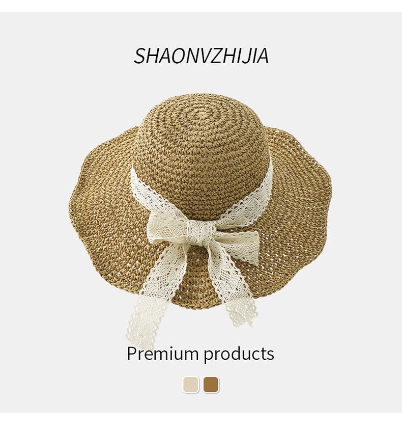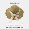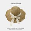 Sombrero de paja con lazo para mujer, de verano, con ala ancha, protector solar, anti-UV, para playa y exteriores.