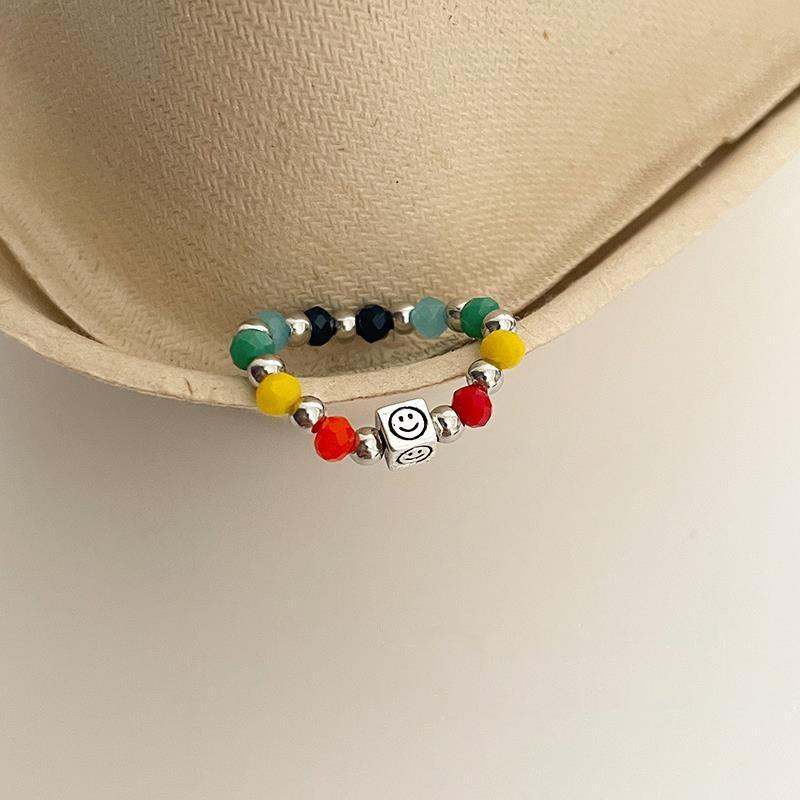 Anillo Elástico Cuadrado Arcoíris Femenino Estilo K Moda Anillo de Diseño Elegante Ins Anillo para Dedo Índice de Estudiante Tendencia