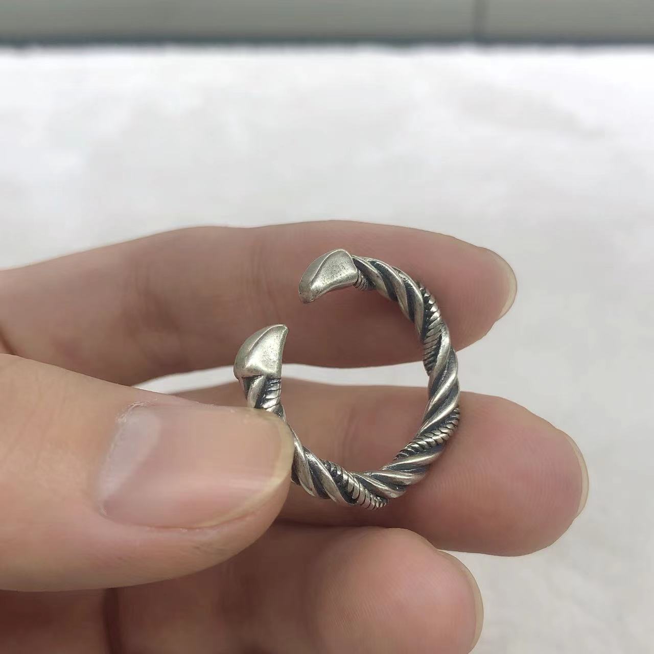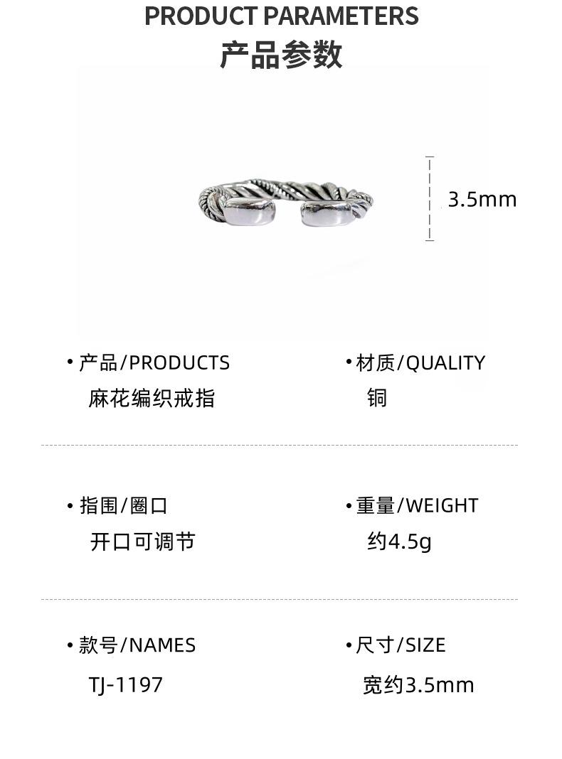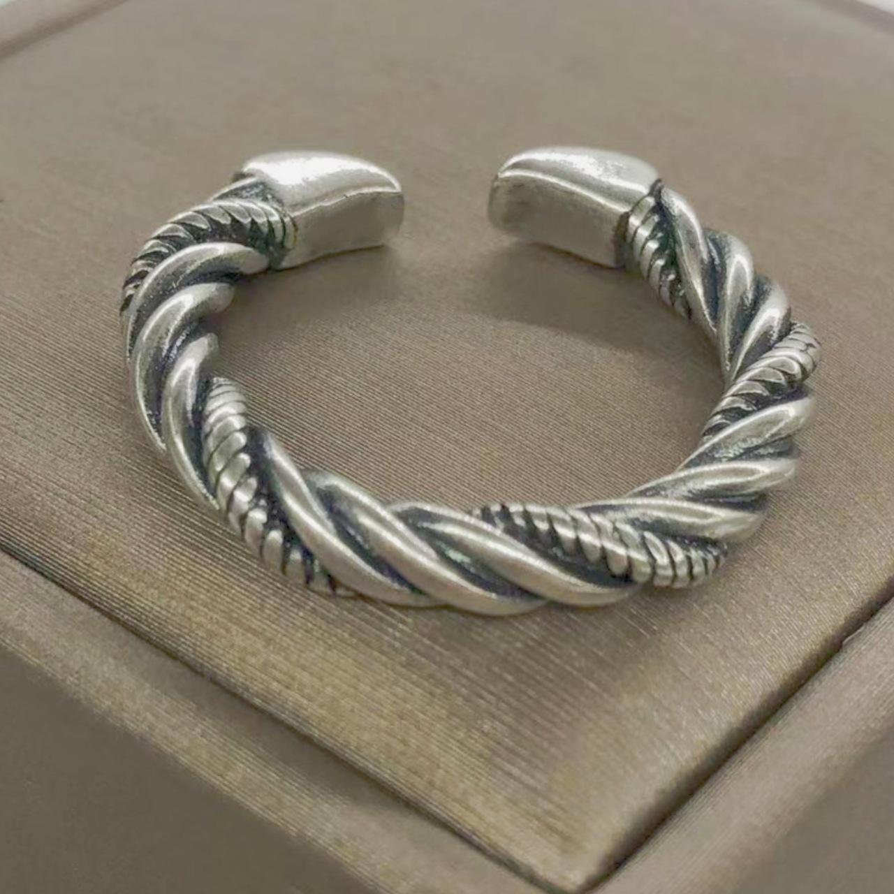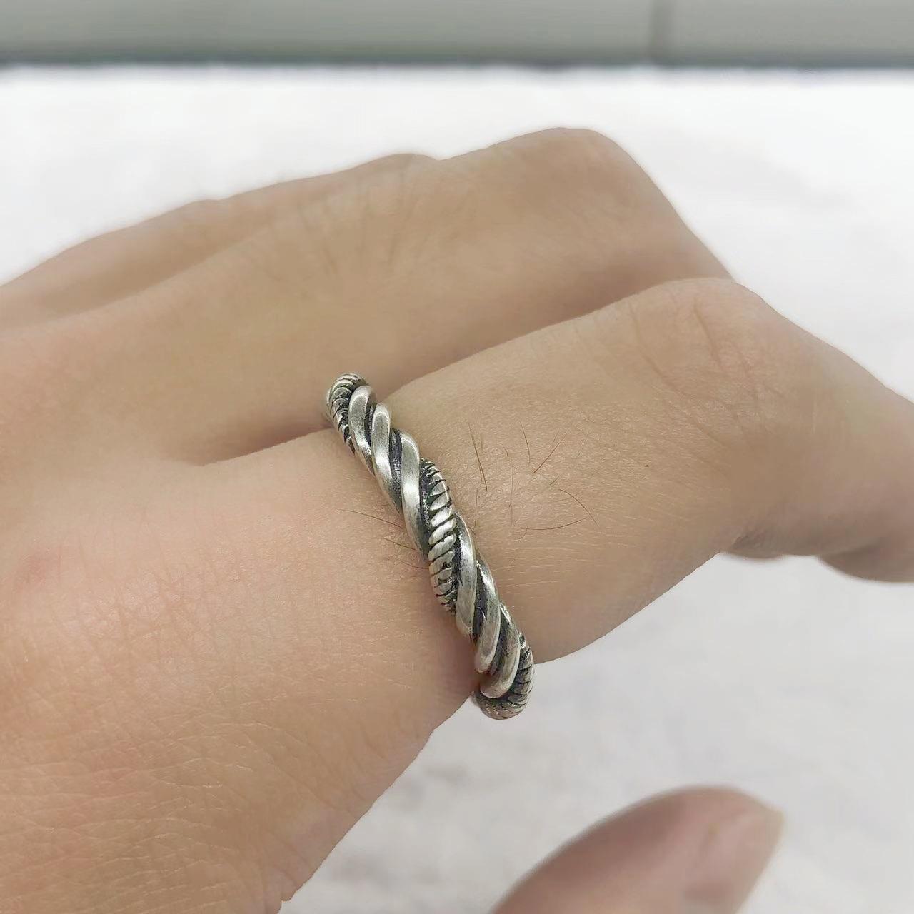 Anillo tejido con giro Chiba para hombre, estilo retro, moderno, abierto, con personalidad, diseño de nicho de plata tailandesa, joyería para el dedo medio