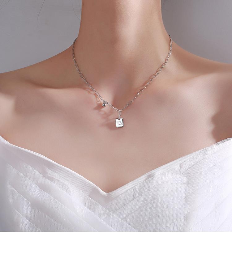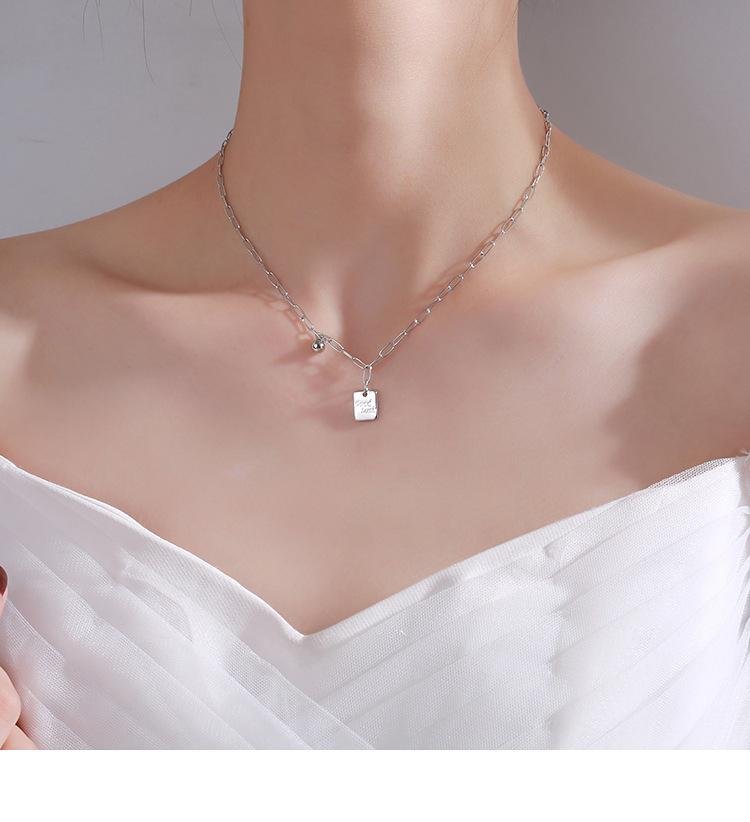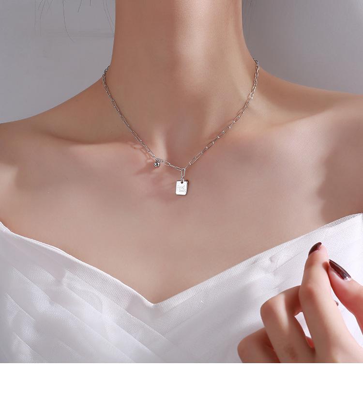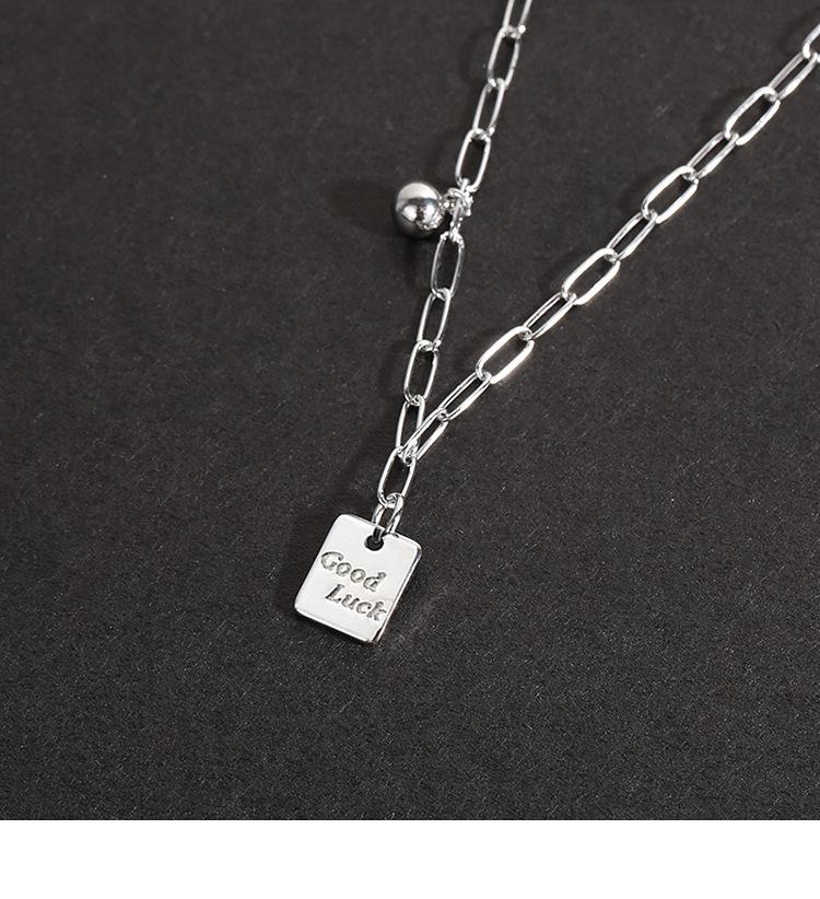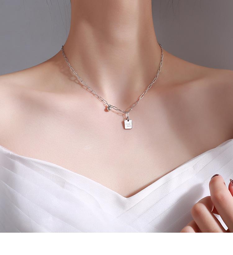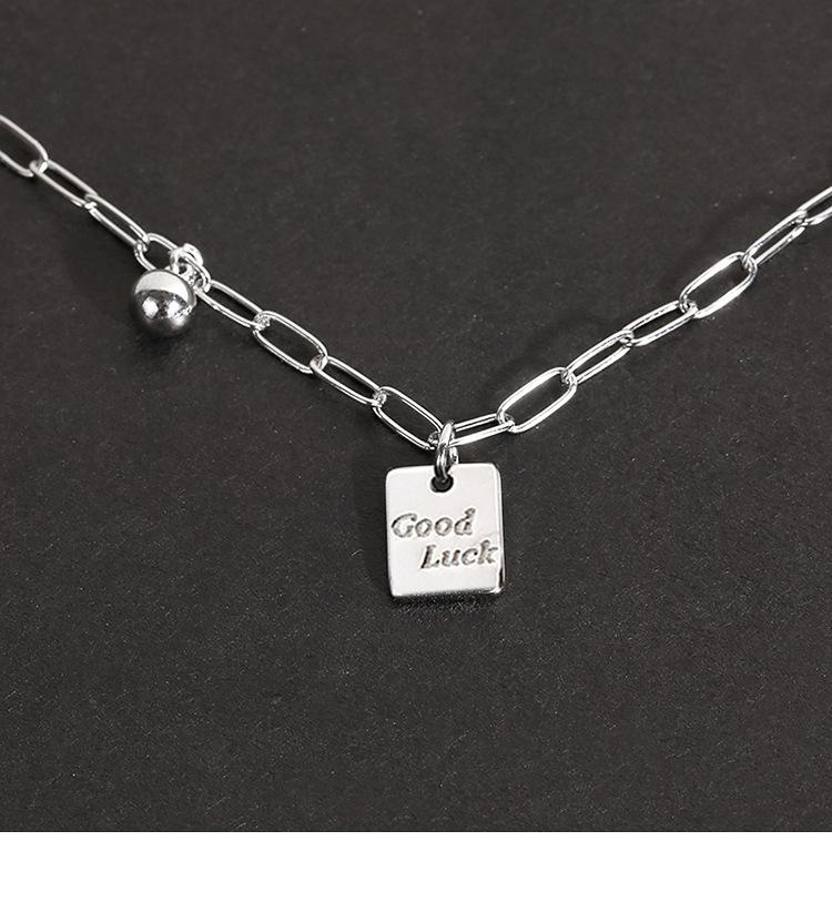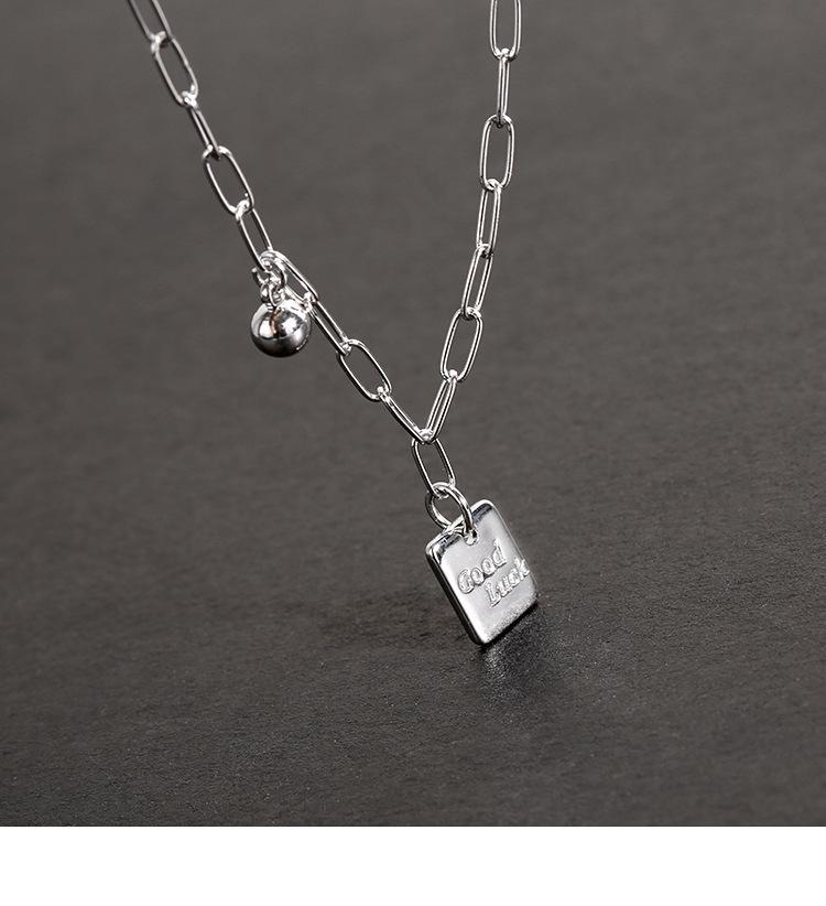 Collar de cadena de clavícula de la suerte simple de moda retro para mujer, estilo coreano, personalizado con letra cuadrada de bola