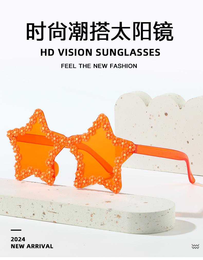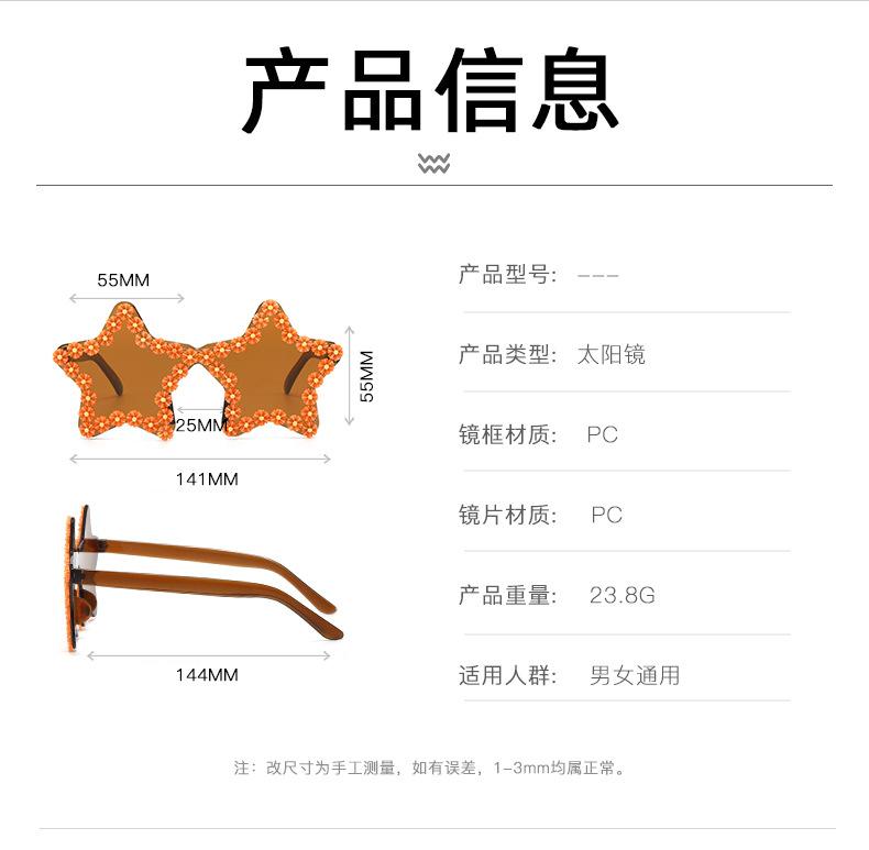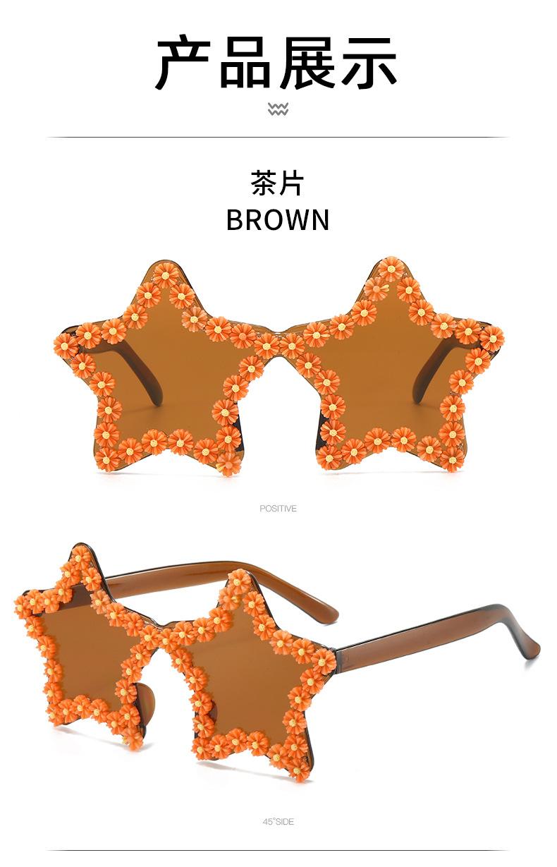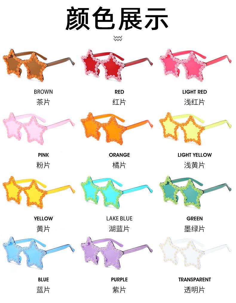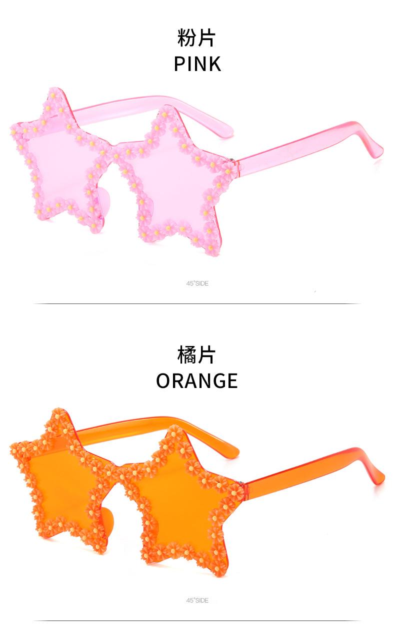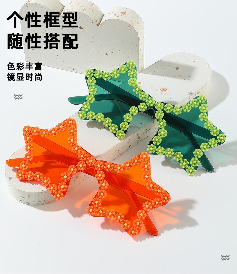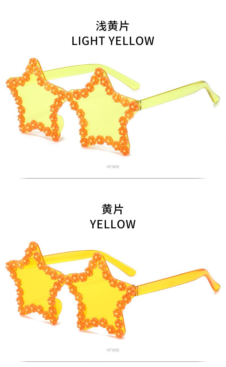 Nuevas gafas de sol transfronterizas con forma de estrella de cinco puntas, gafas de sol decorativas personalizadas con diseño de girasol, gafas de fiesta divertidas y populares en Internet.