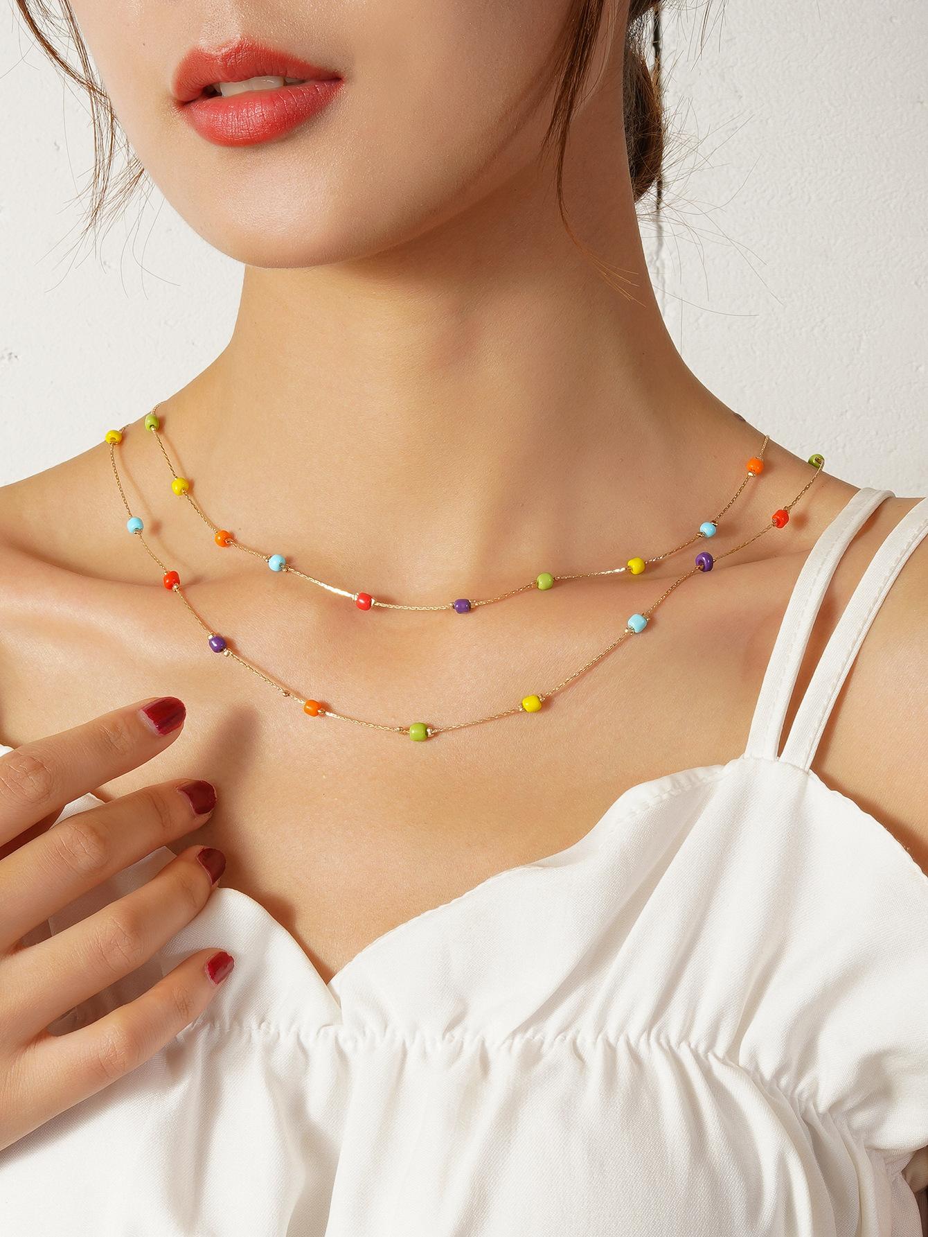 Material: cobre, hierro, aleación de zinc, cuentas de arroz de vidrio