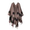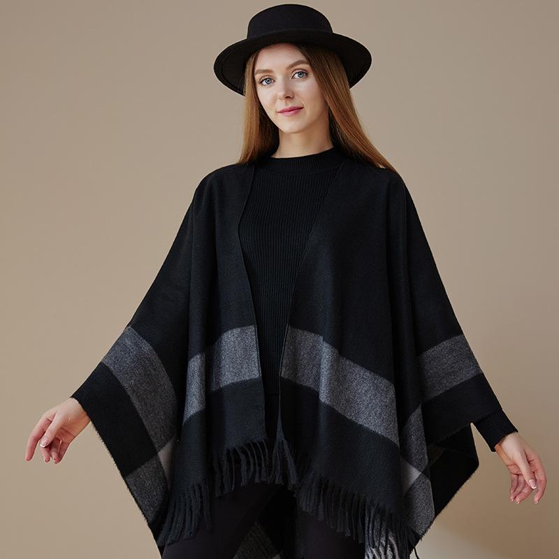 Capa exterior de punto para mujer, estilo nuevo de otoño e invierno, a rayas, con borlas, cálida, para oficina