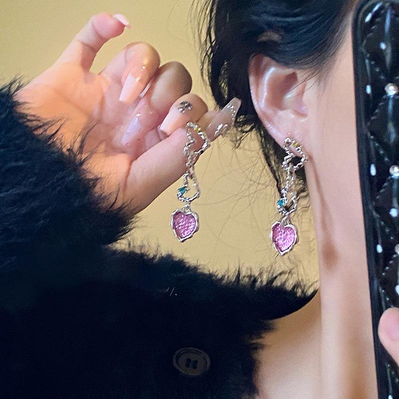 Pendientes de circonita rosa con diseño de nicho elegante y moderno para mujer, de alta gama, 2023.