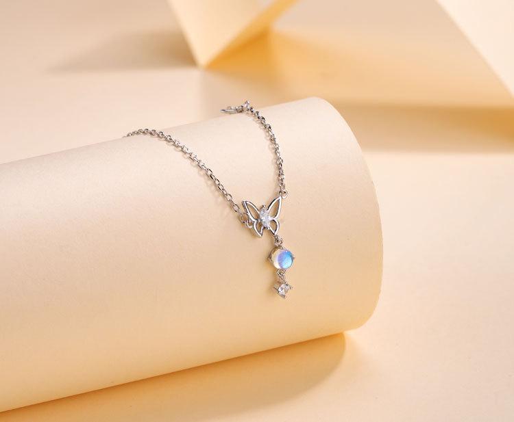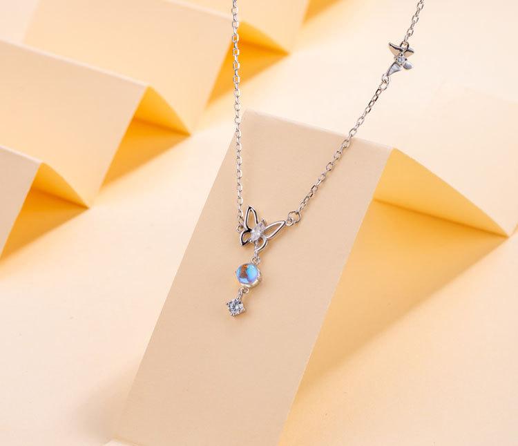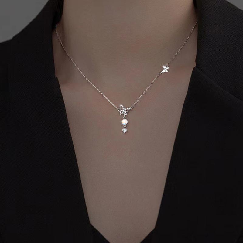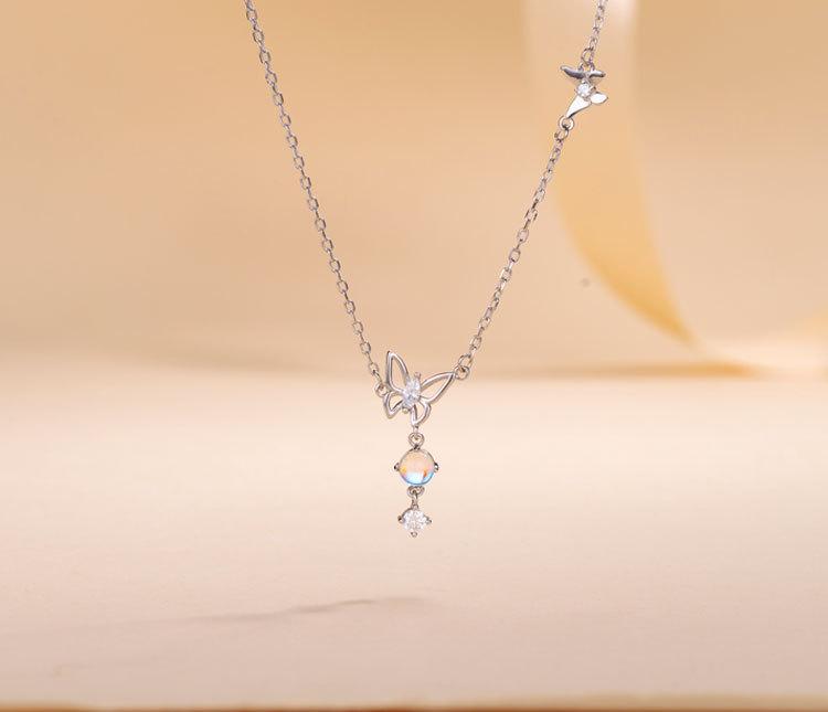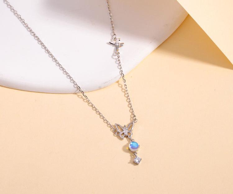 Collar de mariposa de piedra lunar de plata S925 Hee Goo D0465, cadena de clavícula con diseño de nicho para mujer, nueva tendencia 2023