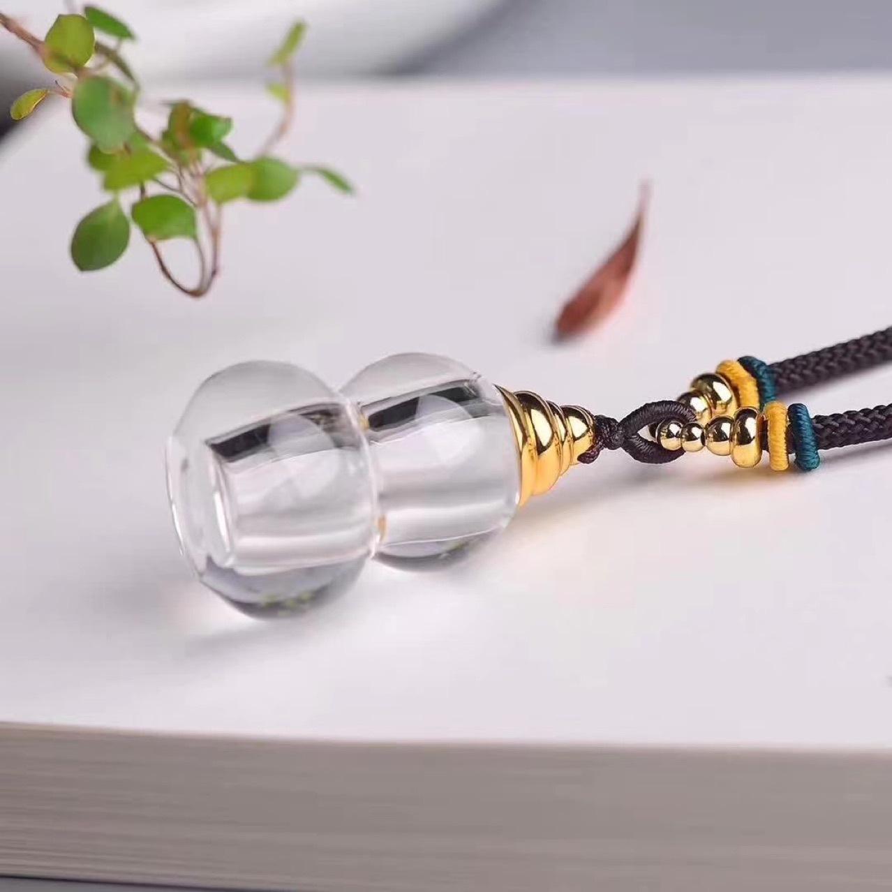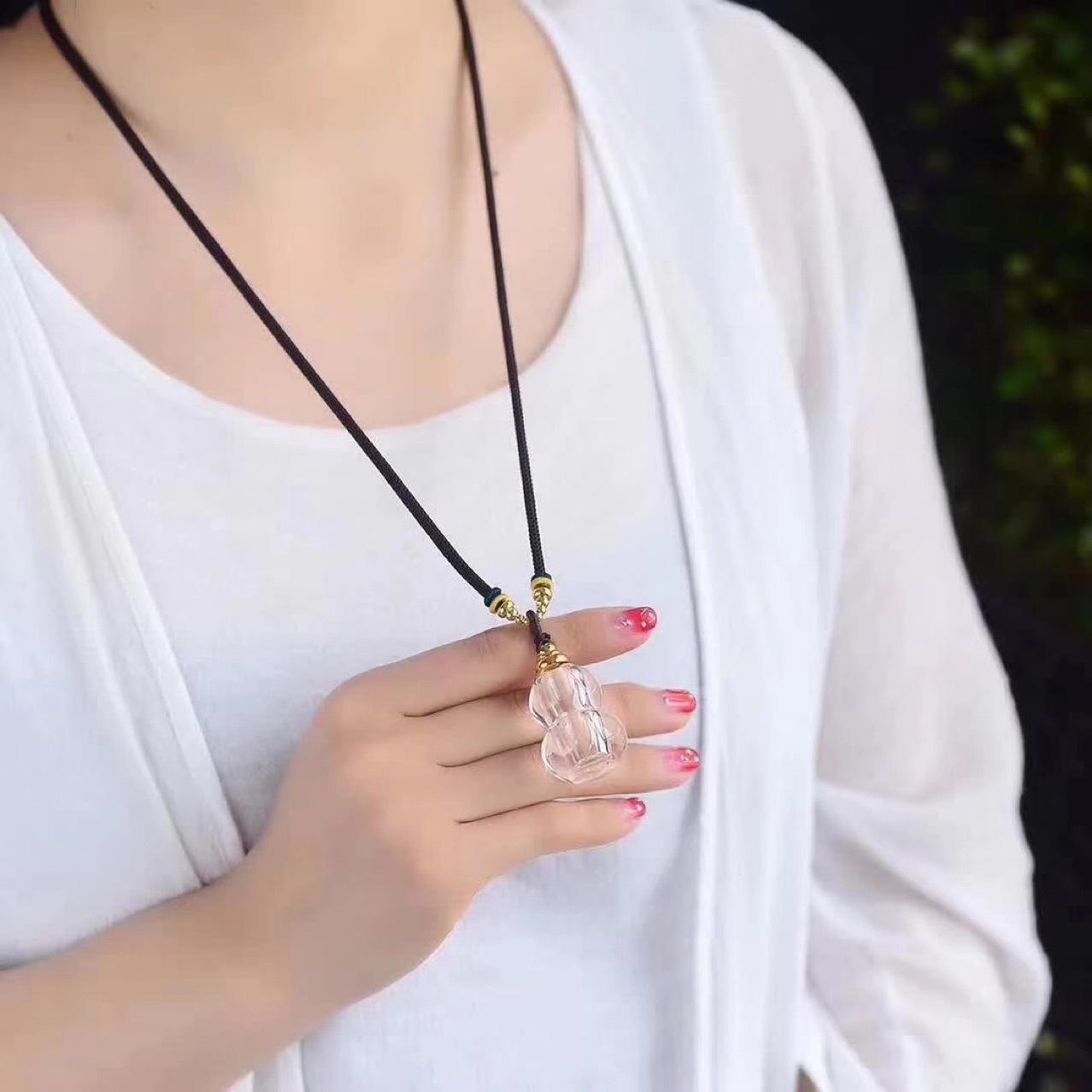 Collar con colgante de botella de concha de calabaza de cristal blanco natural Haolan Crystal, cadena para suéter