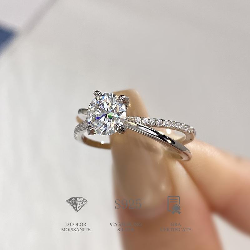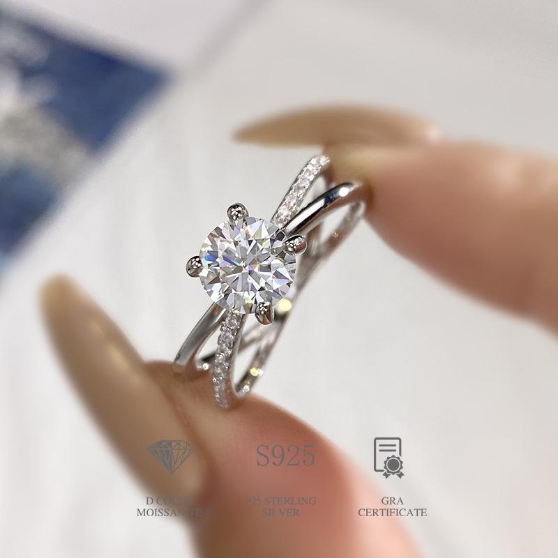 Anillo de moissanita, anillo de plata para mujer, destello de cuatro garras, anillo de diamantes con diamantes, anillo de cola, transmisión en vivo rápida de TikTok