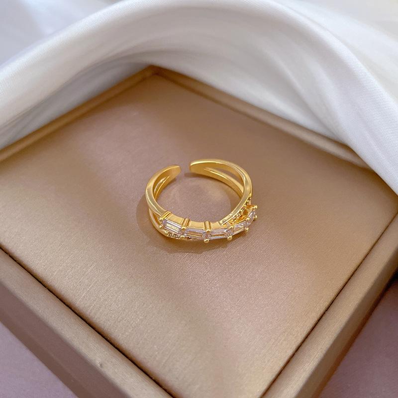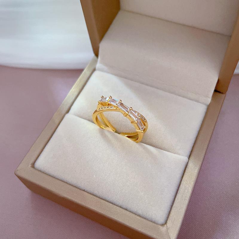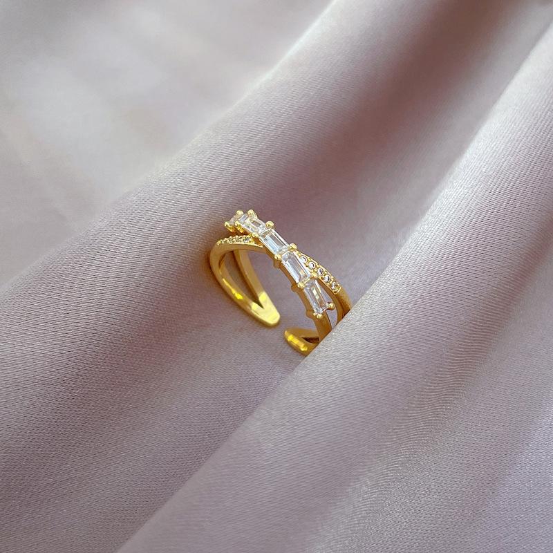 [Chapa de Oro Real] Anillo Abierto Cruz Diamante Completo Anillo Personalizado Anillo para Dedo Índice Estilo Celebridad de Internet Mismo Estilo Casual y Cool