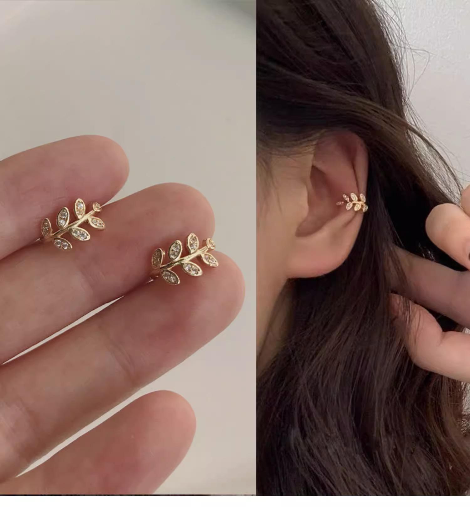 Clip para hueso de la oreja de hoja francesa elegante simple pequeño hada Mori Super hada clip para la oreja clip para la oreja sin perforación femenino