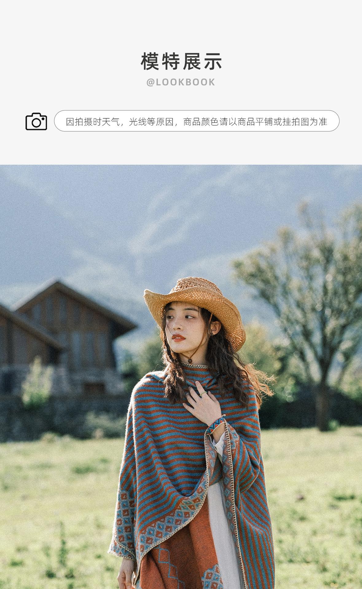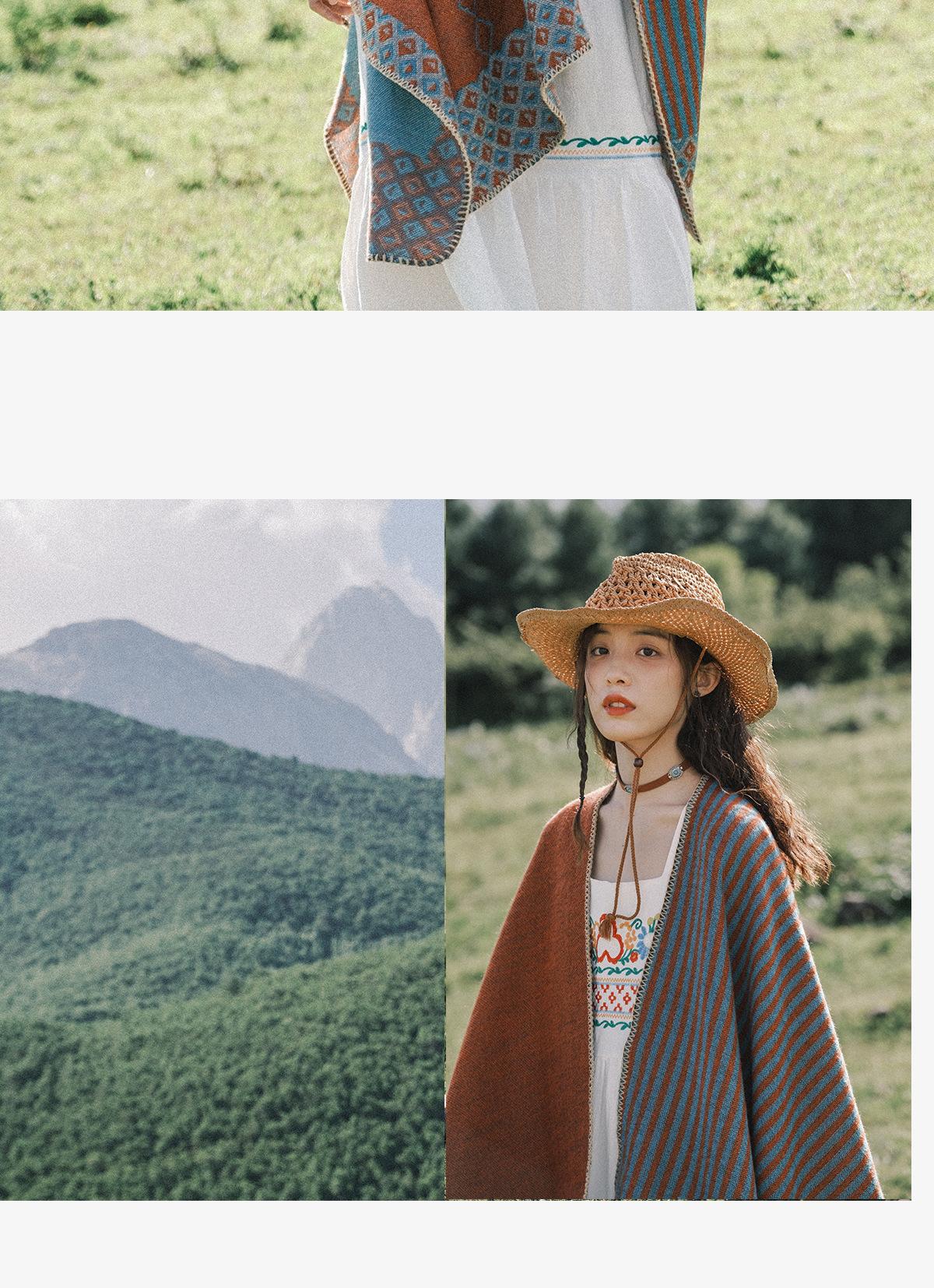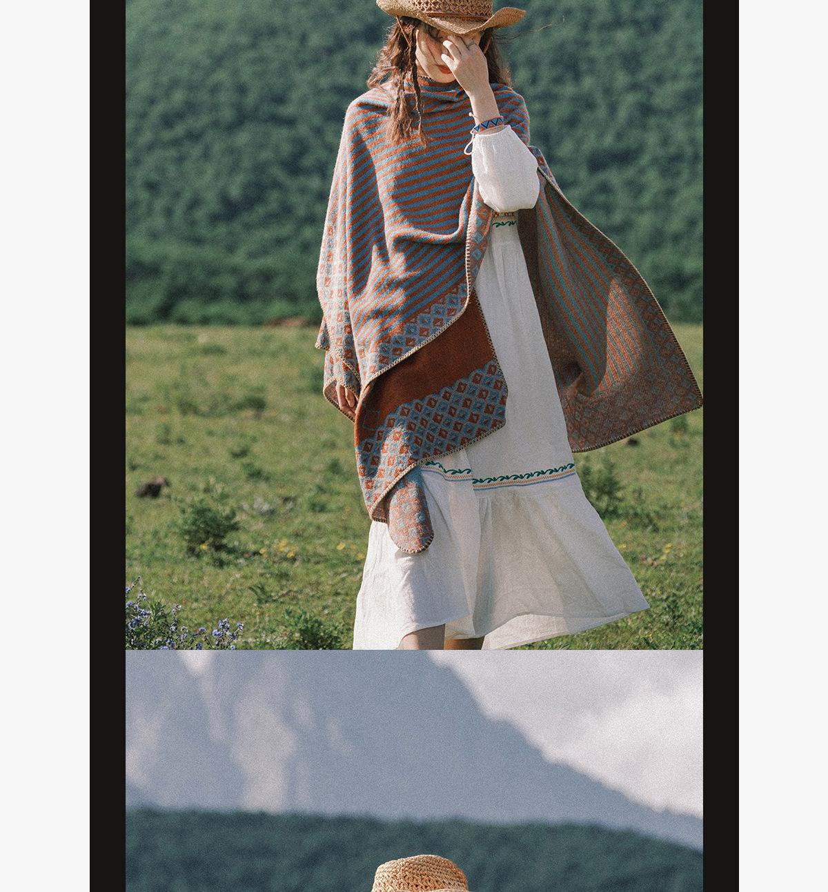 Fábrica en stock chal capa dividida para mujer estilo retro borla doble cara viaje Yunnan capa cálida nuevo