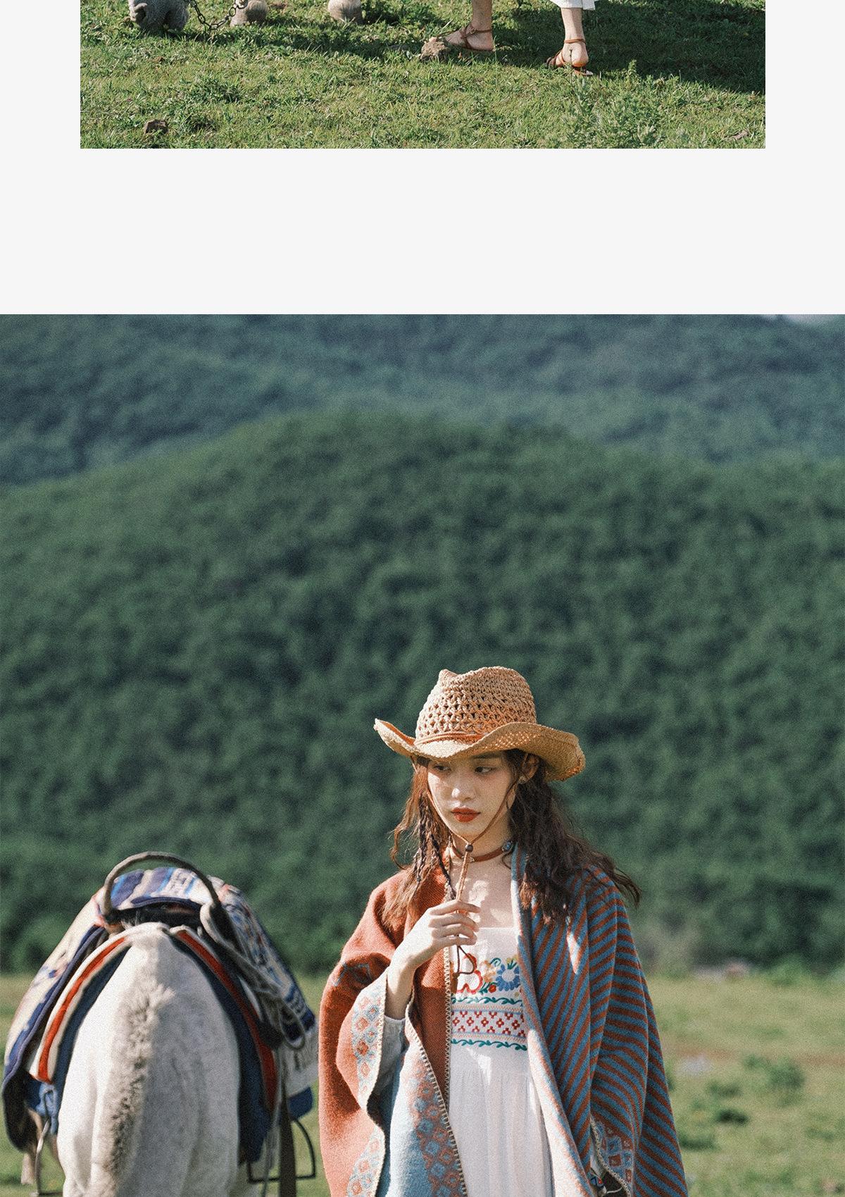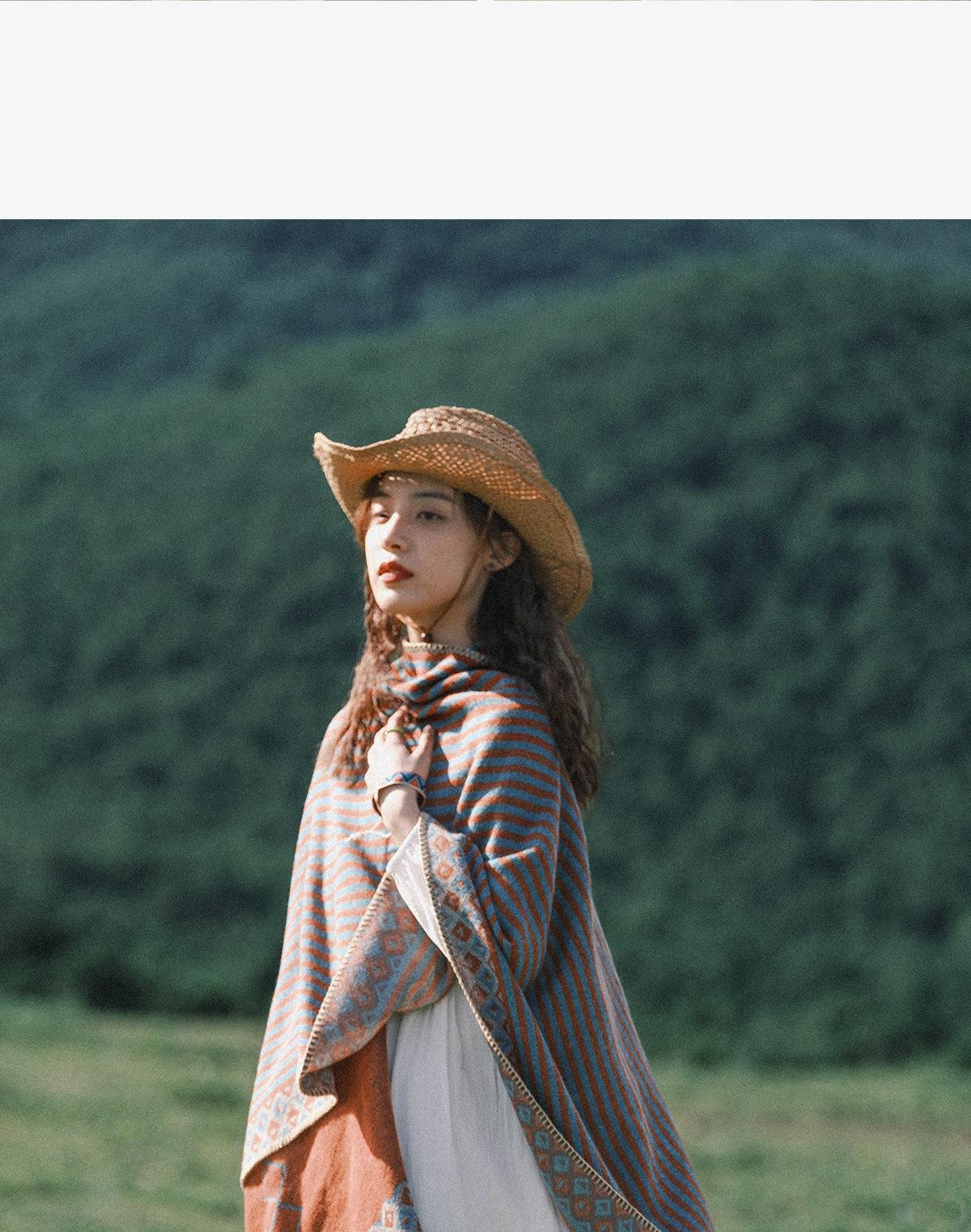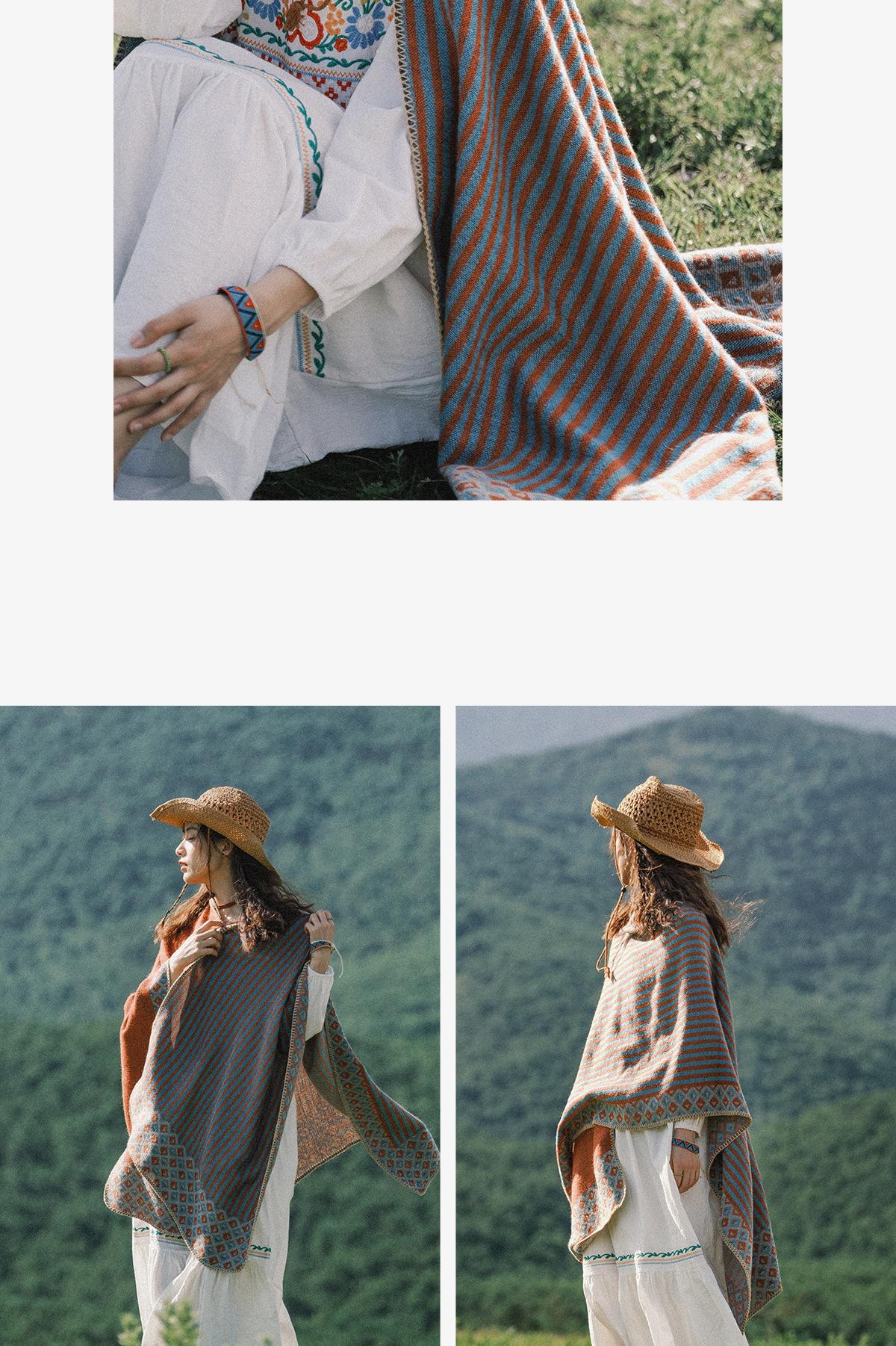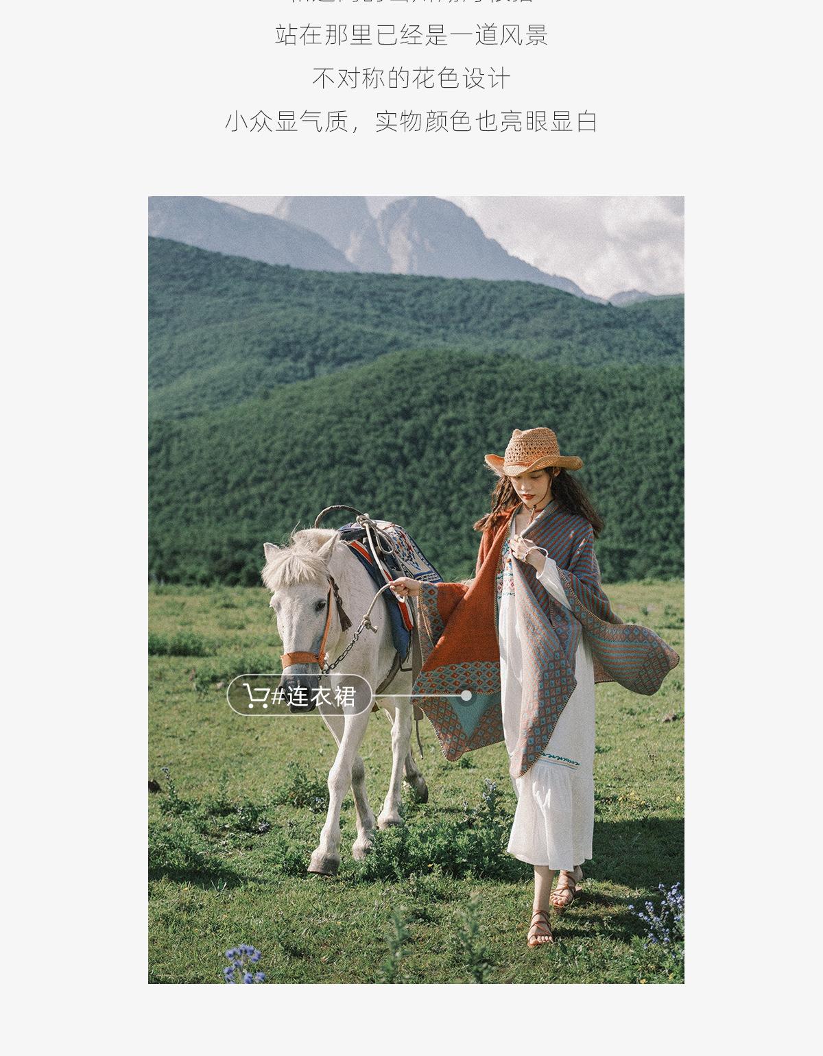 Fábrica en stock chal capa dividida para mujer estilo retro borla doble cara viaje Yunnan capa cálida nuevo