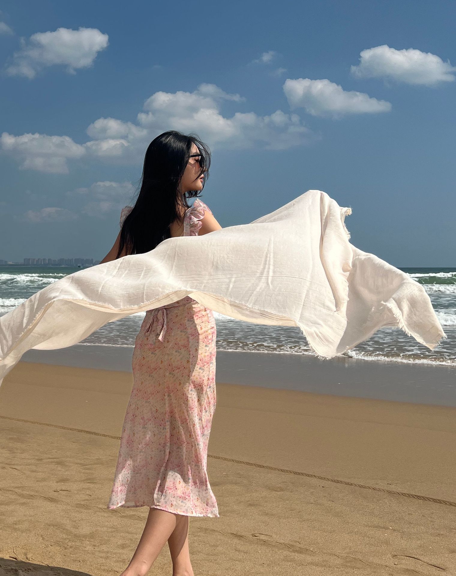 Bufanda larga de seda de color puro estilo coreano de primavera transfronteriza, bufanda de viaje de moda para mujer, bufanda protectora solar, chal