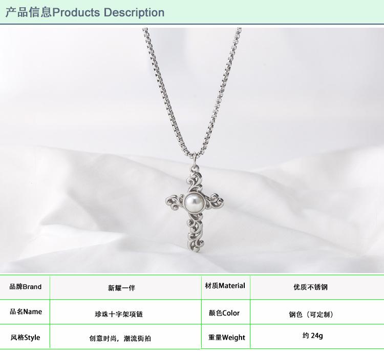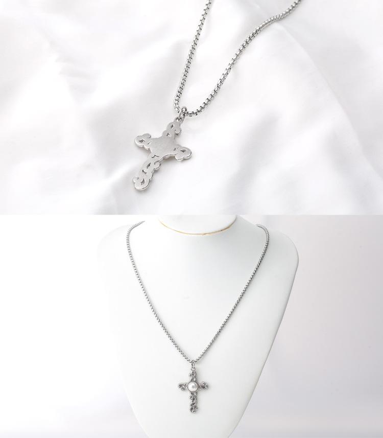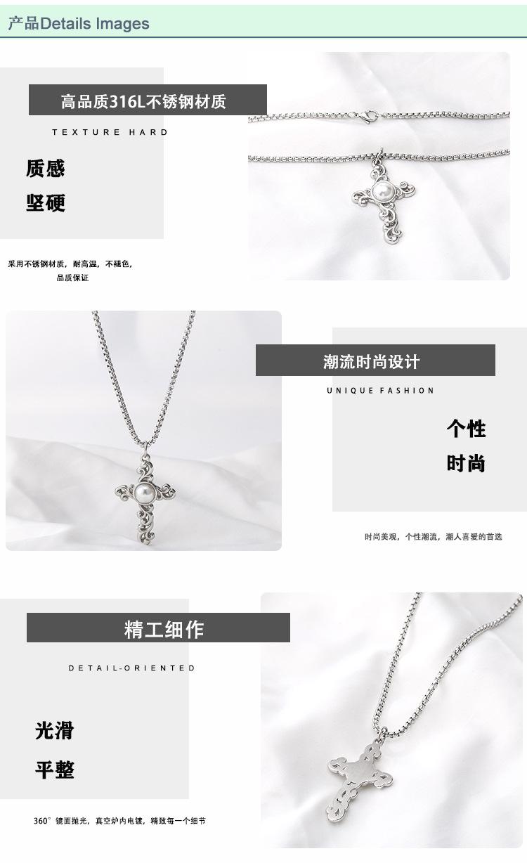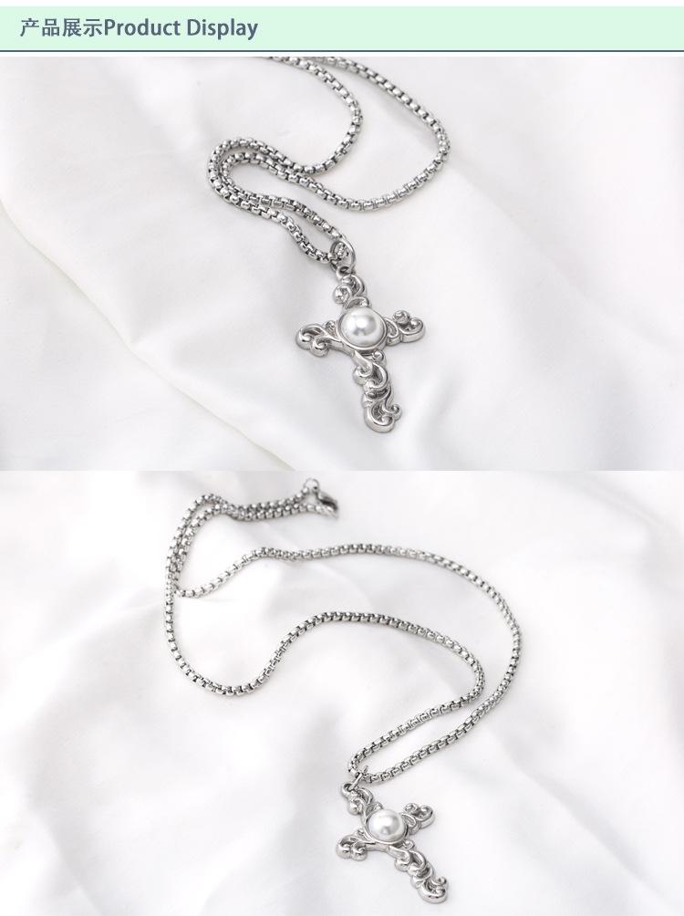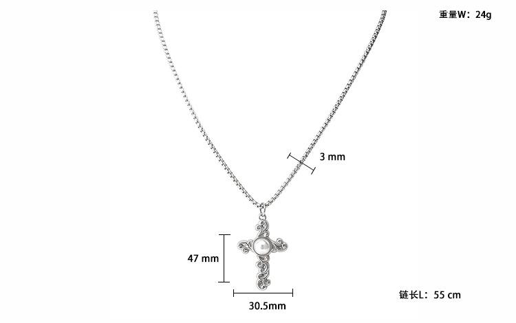Collar Largo de Cruz de Perla de Acero de Titanio de Moda de Estilo Punk Metal Retro Europeo y Americano Nuevo Transfronterizo para Hombres y Mujeres