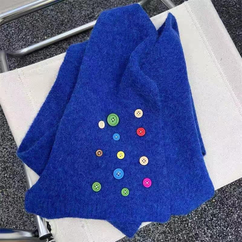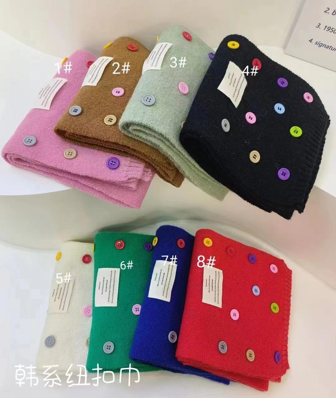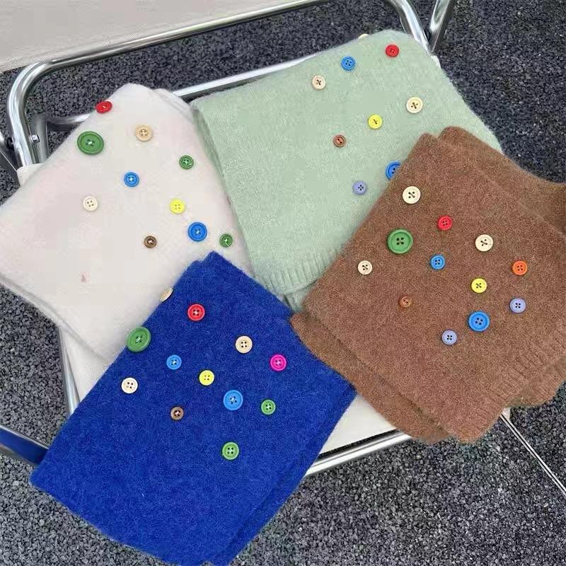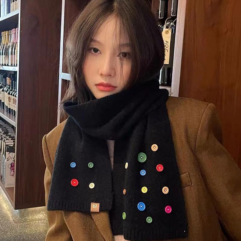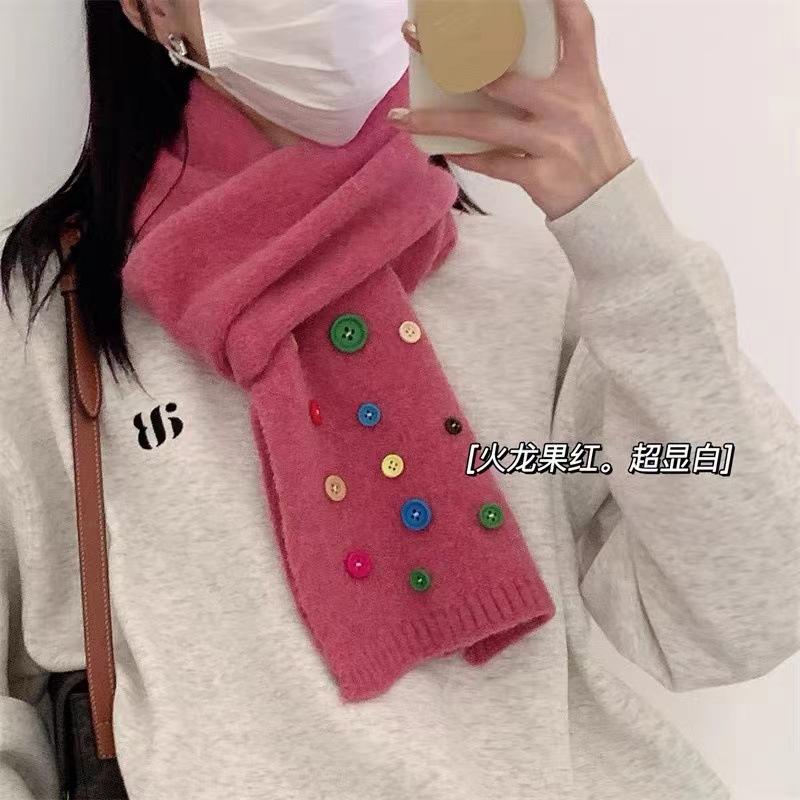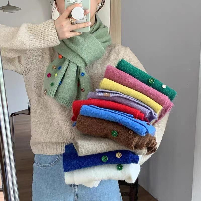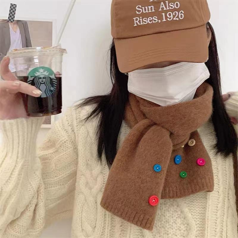 Bufanda gruesa de color caramelo con botones suaves y coloridos para mujer, estilo coreano para otoño e invierno, cálida y combinable con todo.