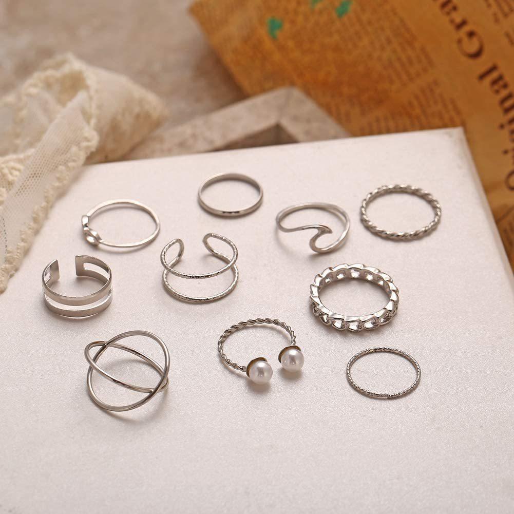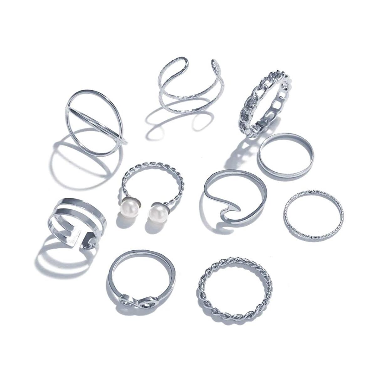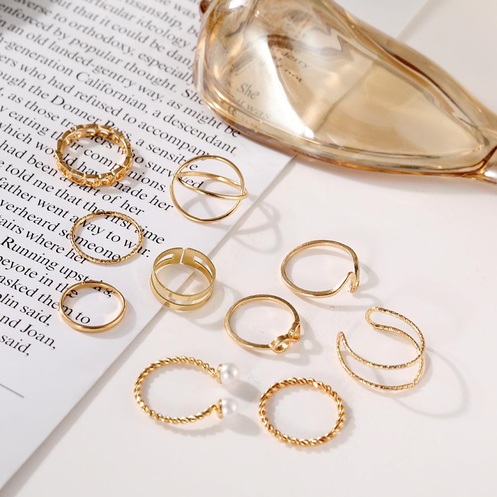 Anillo Conjunto de Ocho Caracteres Transfronterizo Anillo de Perlas Cruz Anillo Simple Conjunto de 10 Piezas Estilo Punk Venta Directa al por Mayor