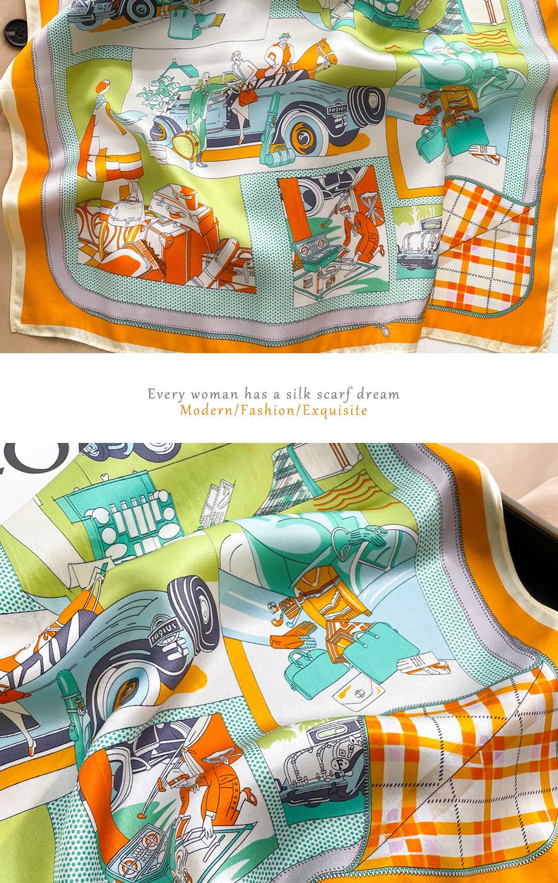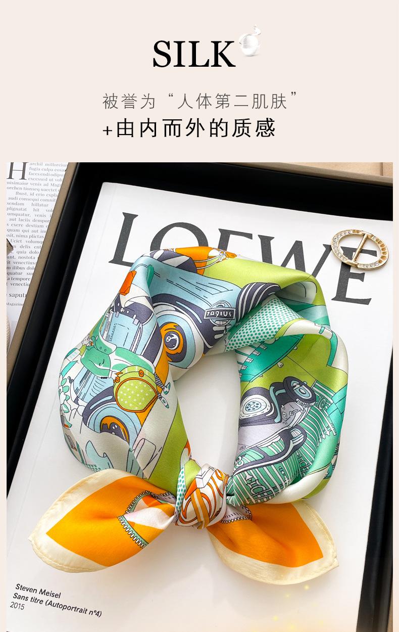 Bufanda cuadrada pequeña de seda morera verde y amarilla para mujer, bufanda protectora para el cuello de primavera y otoño, bufanda fina de seda 50