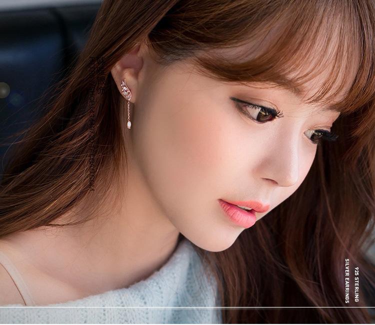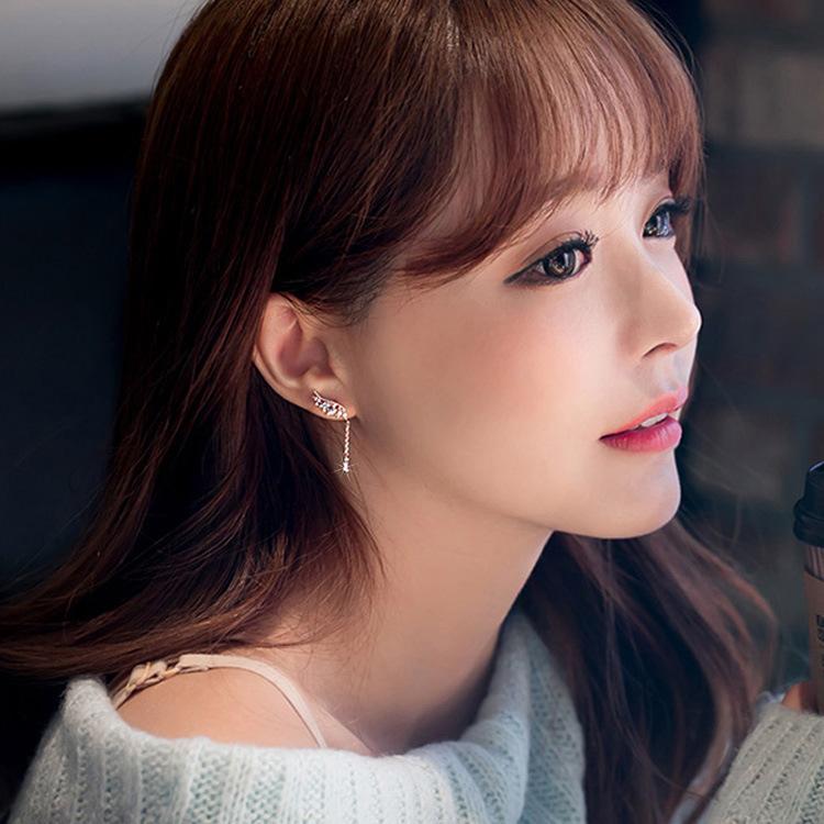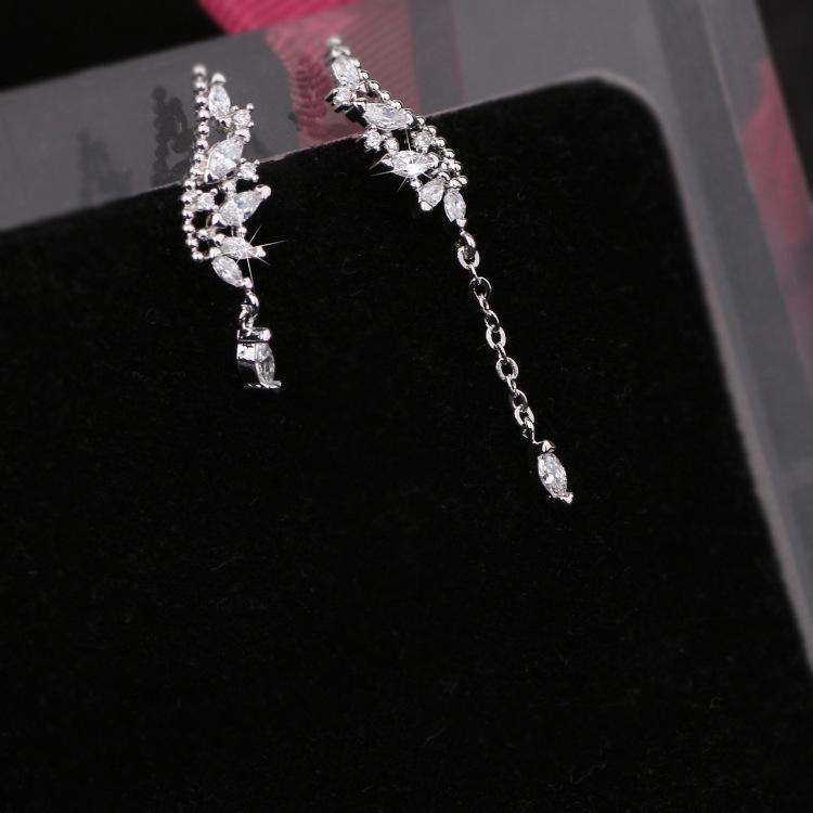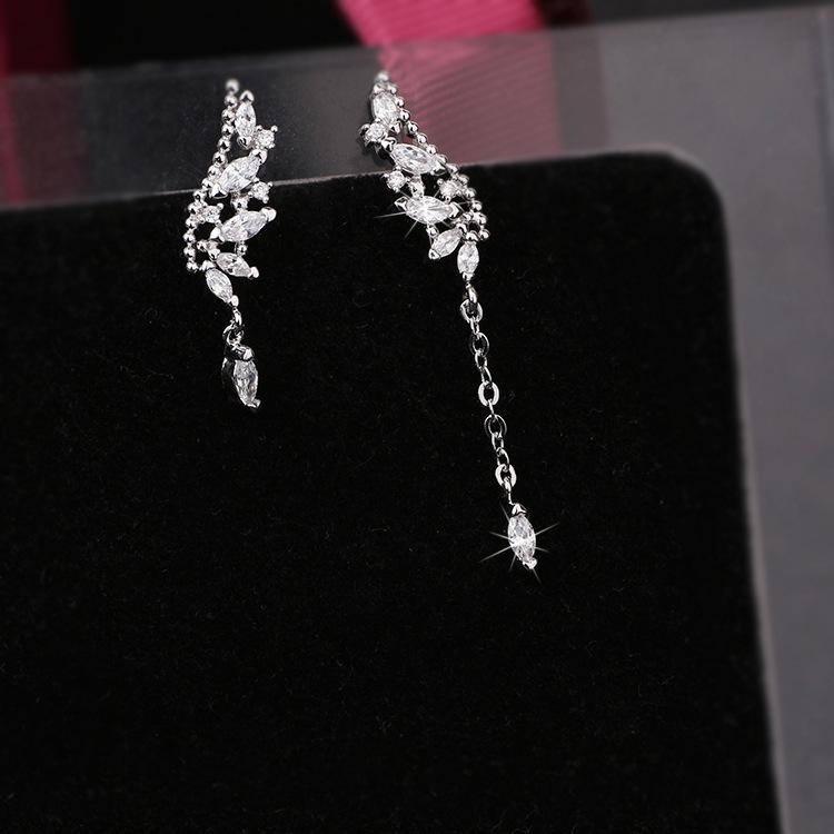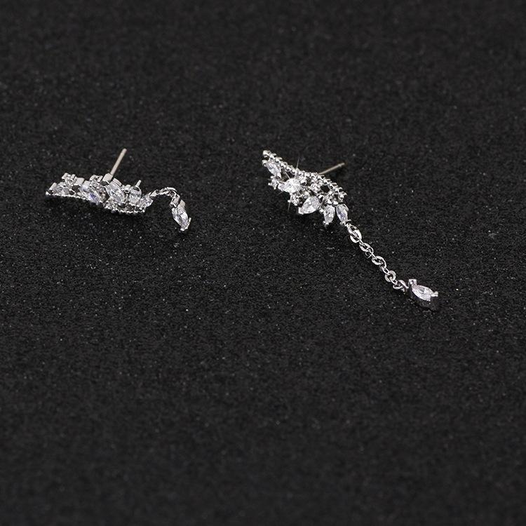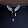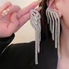 Pendientes de borla asimétrica con incrustaciones de diamantes y alas de ángel de estilo coreano, largos, chapados en plata, con temperamento de moda para mujer