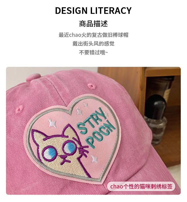 Gorra de béisbol rosa Love para mujer, estilo coreano, con cabeza grande, suave, con forma de gato, moderna y de cara pequeña.