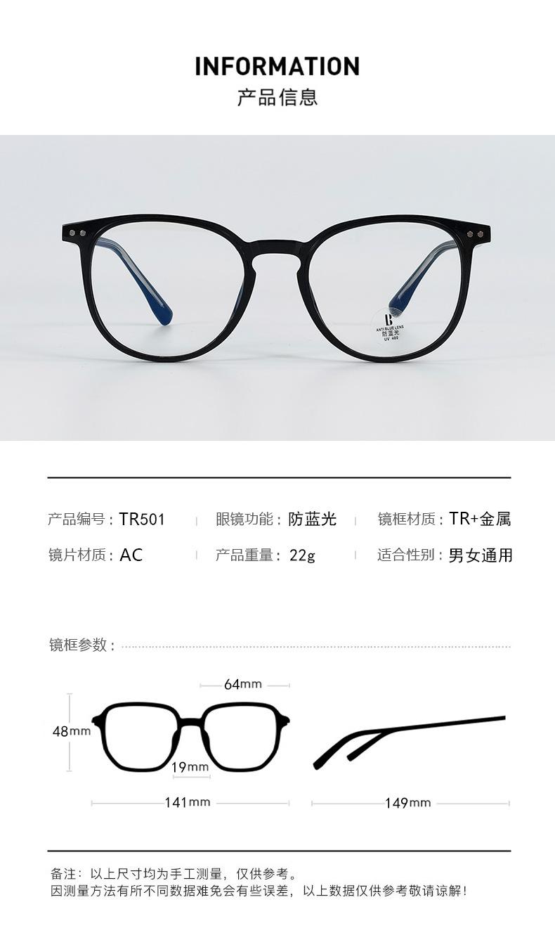 2024 Nuevas gafas de moda con montura de placa con marco para miopía para hombres, estilo retro popular, con espejo plano anti-luz azul para mujeres