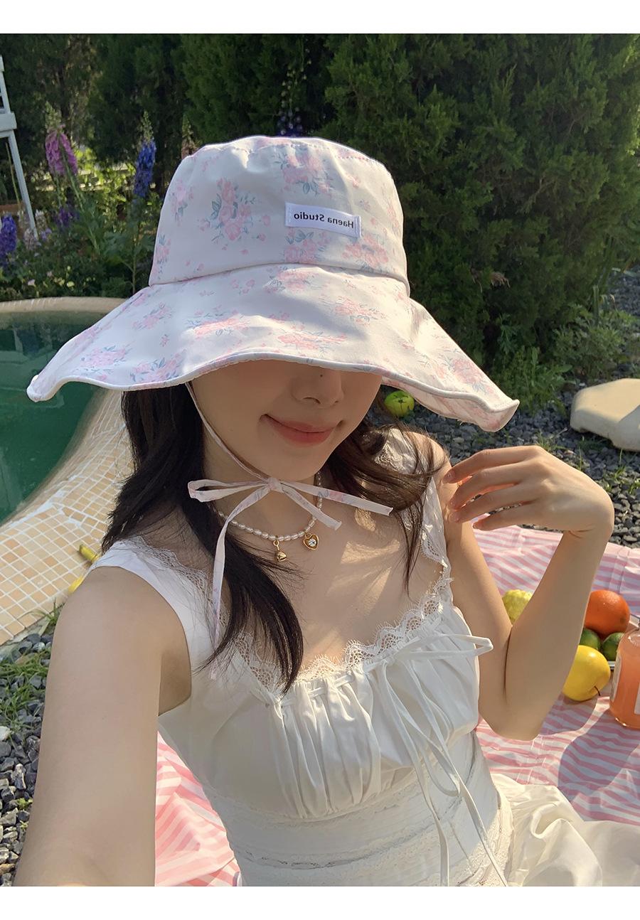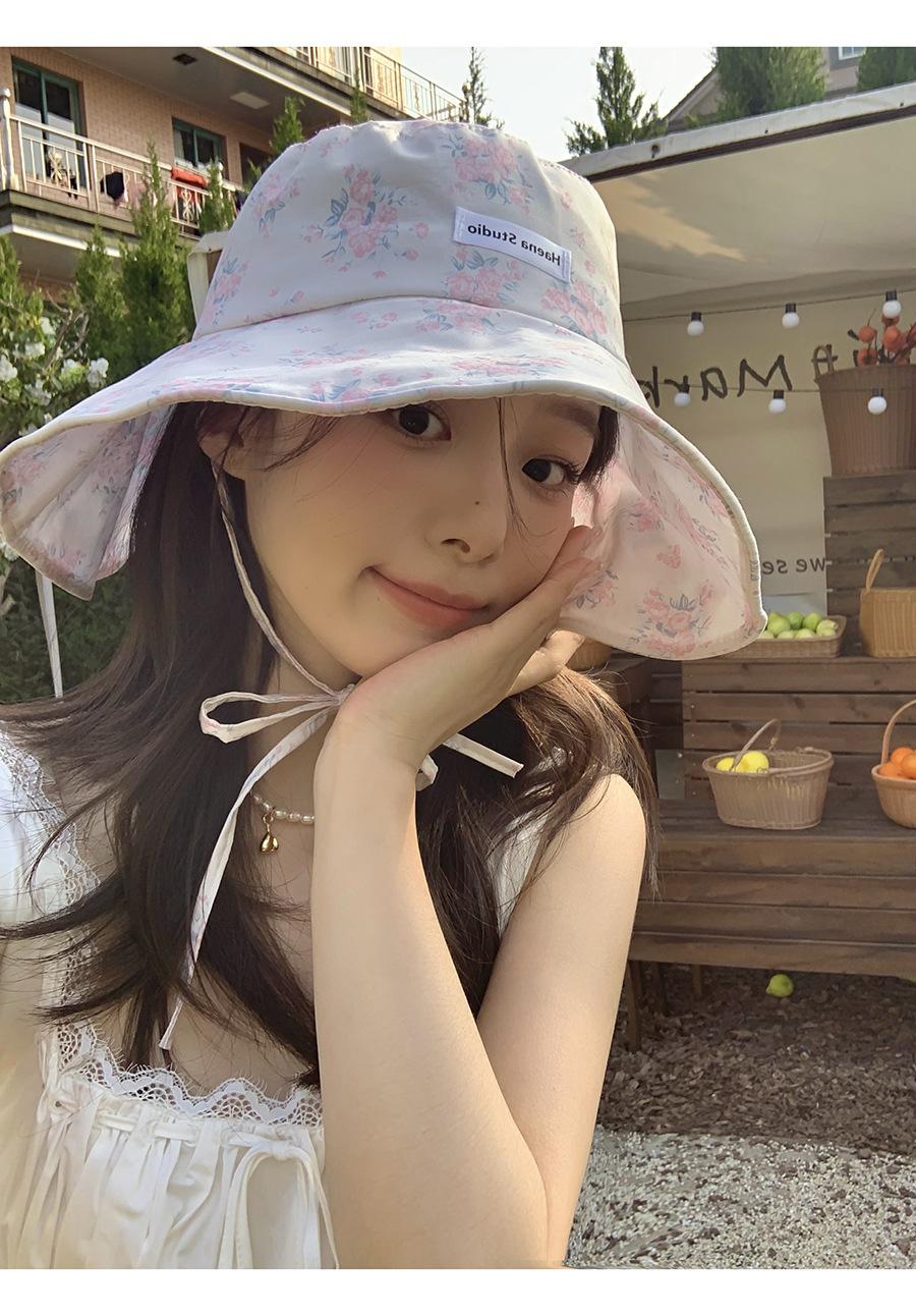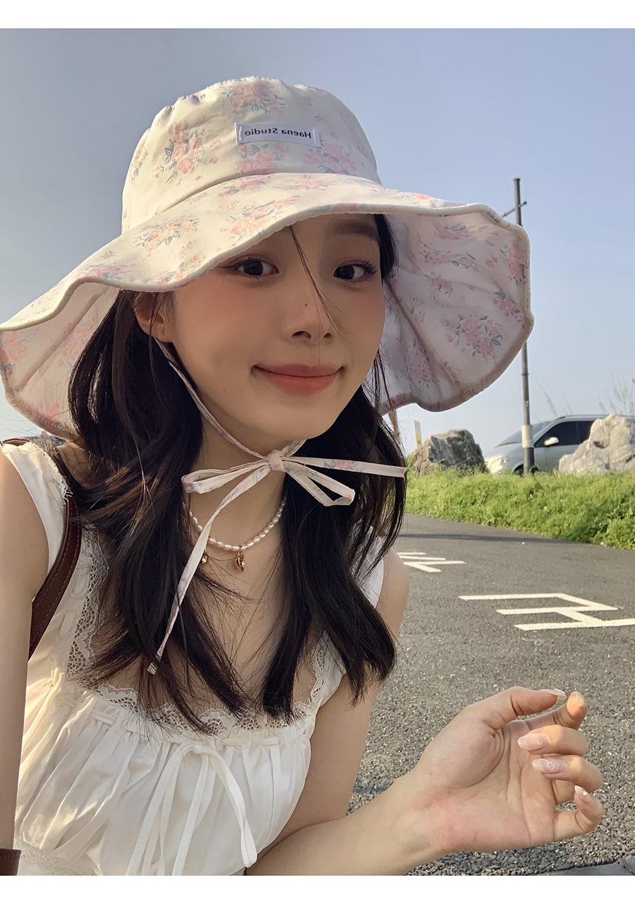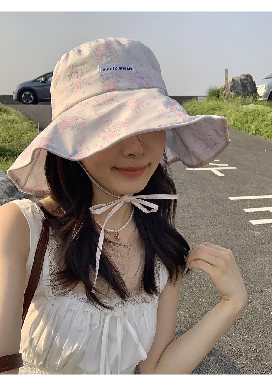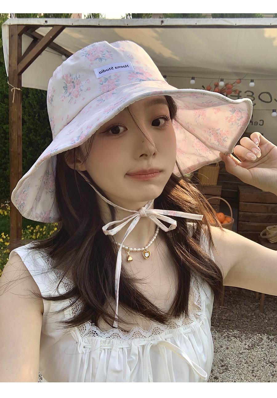 Sombrero de pescador con diseño floral de estilo coreano para mujer, sombrero de ala grande para el sol, pequeño, combinable con todo, para verano