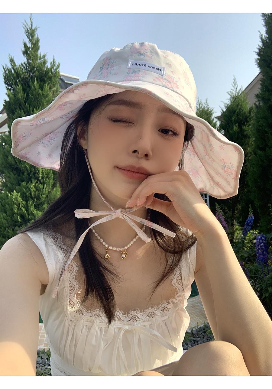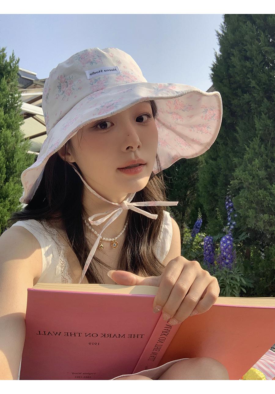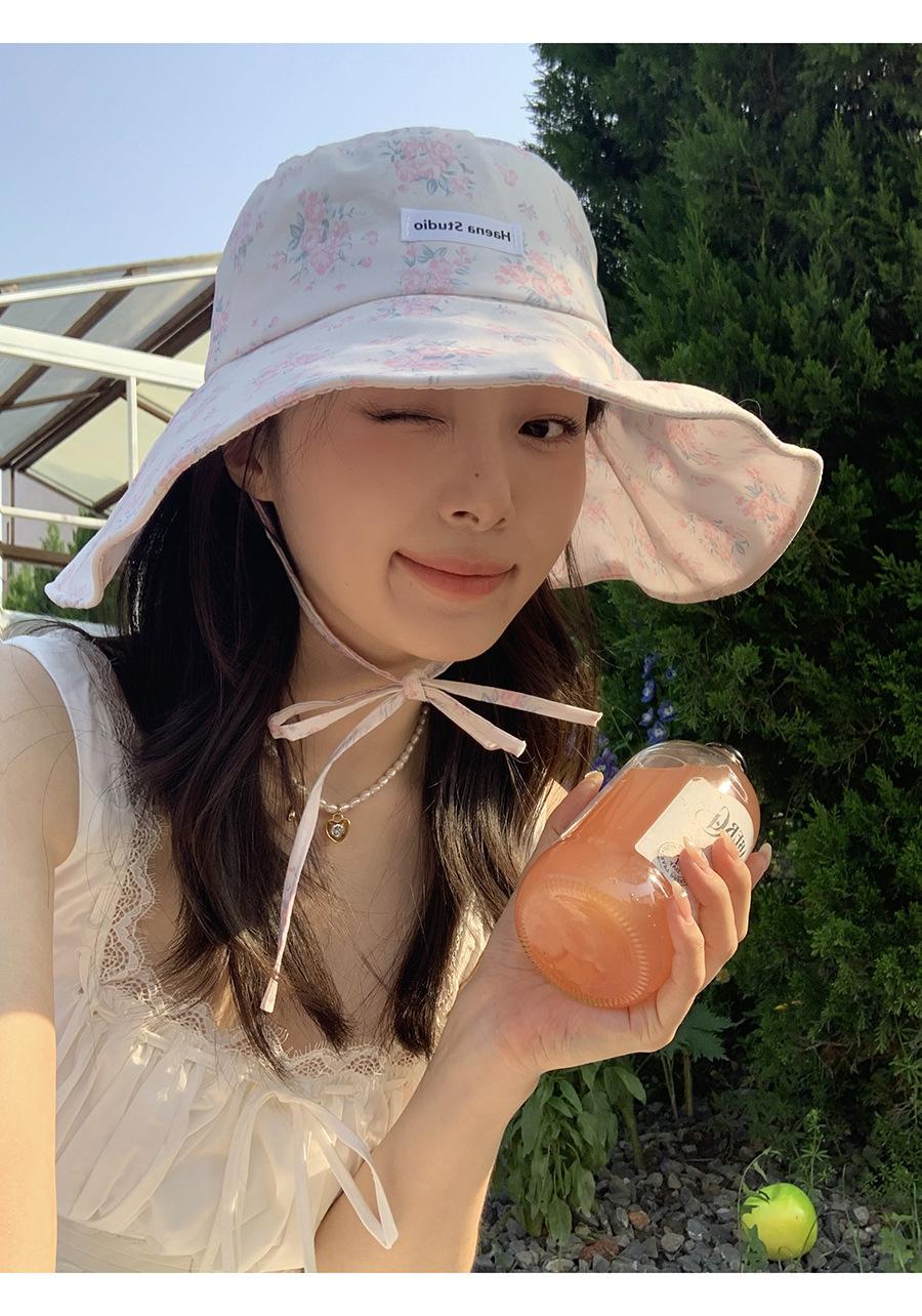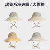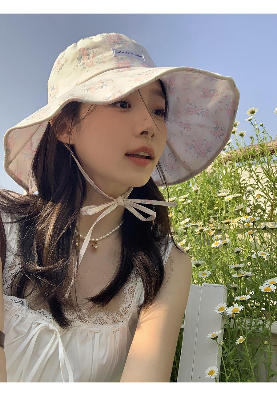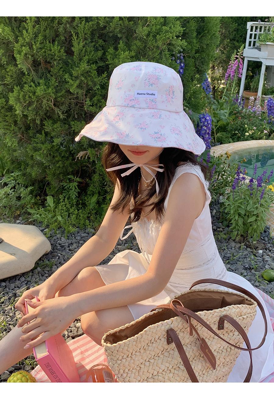 Sombrero de pescador con diseño floral de estilo coreano para mujer, sombrero de ala grande para el sol, pequeño, combinable con todo, para verano