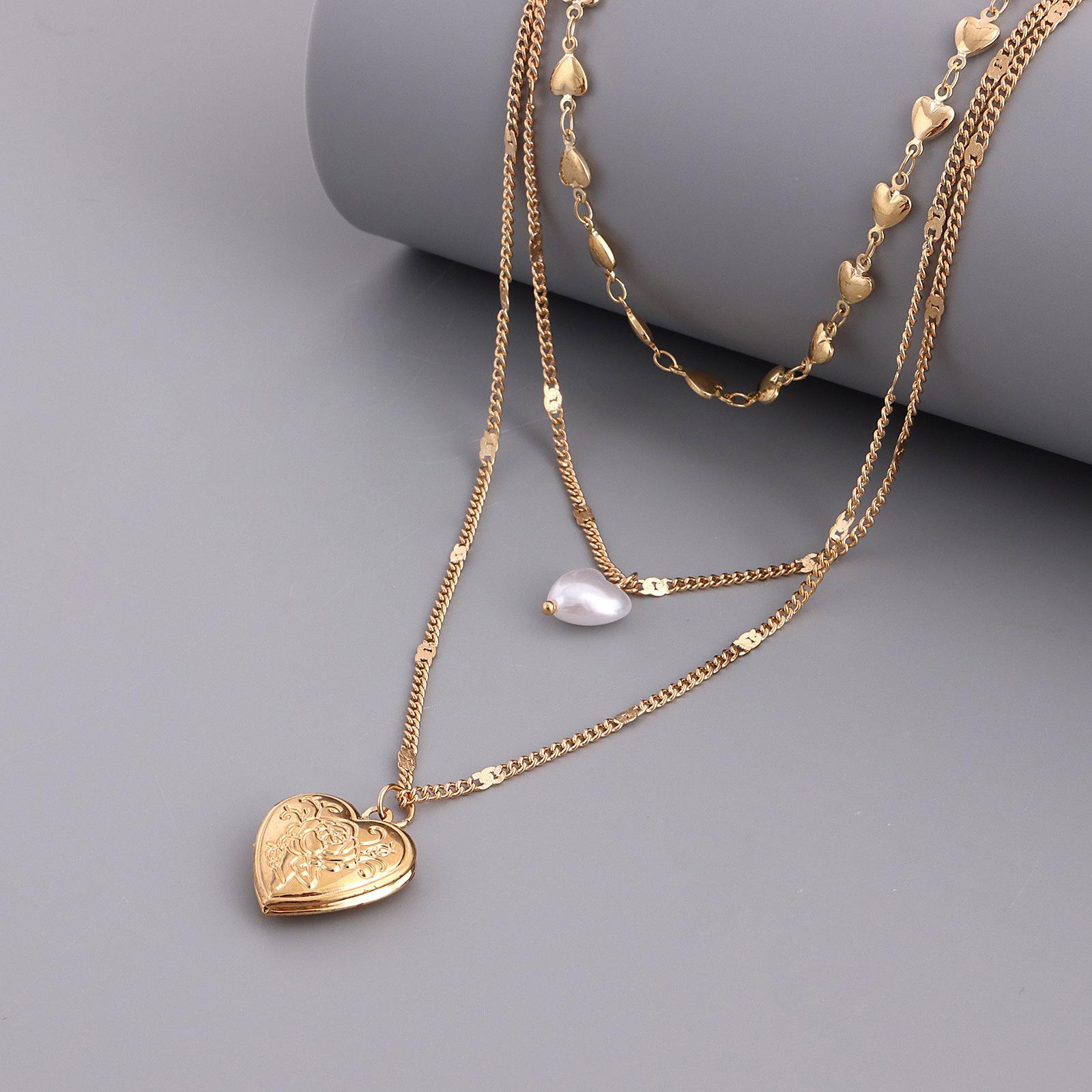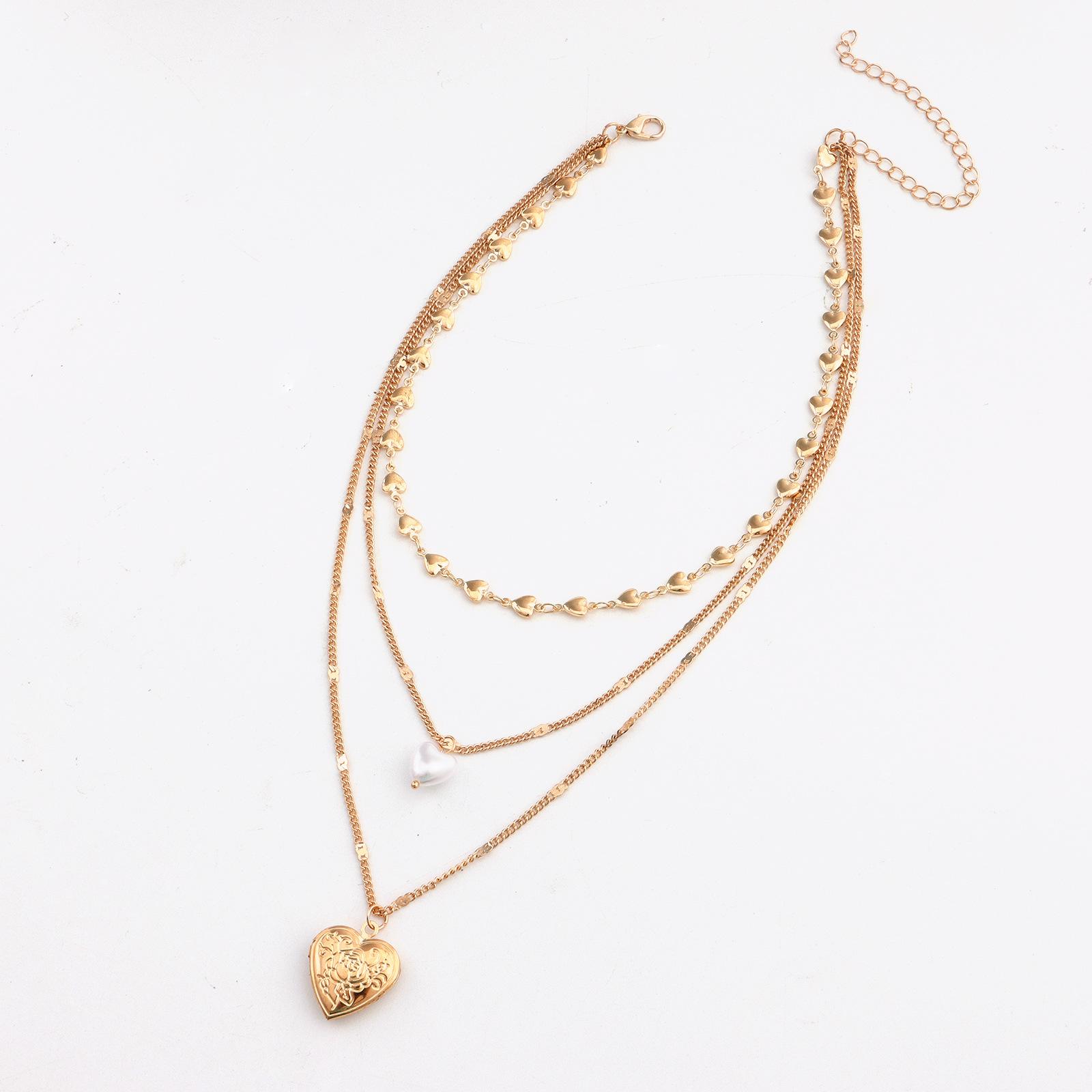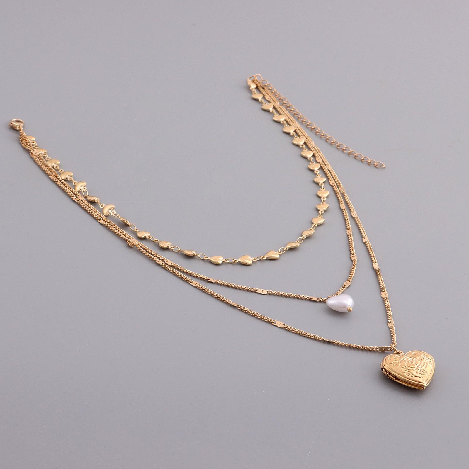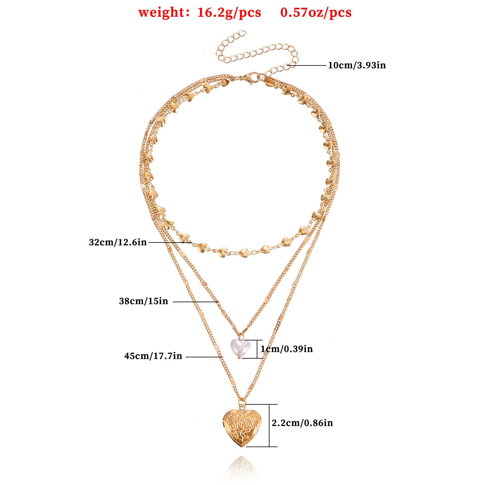 Europa y los Estados Unidos joyería transfronteriza temperamento multicapa cadena de amor perla se puede abrir collar colgante de corazón de melocotón estilo ins femenino