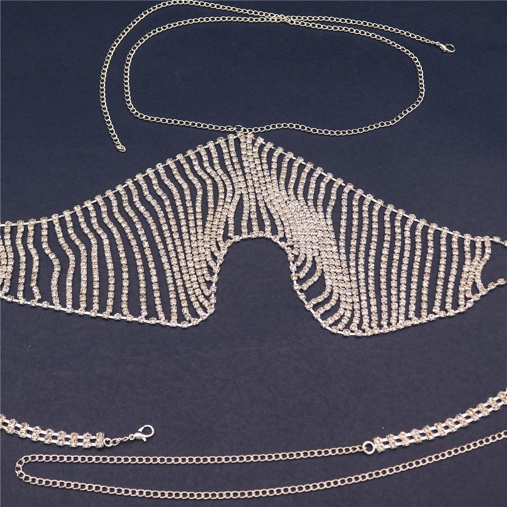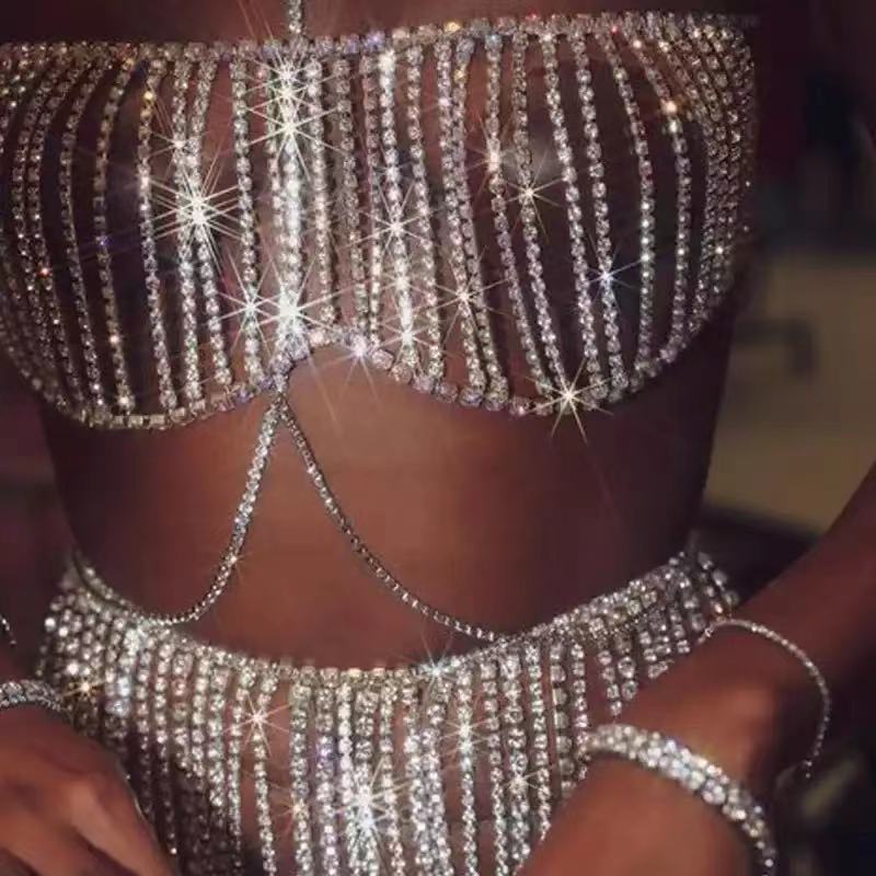 Sujetador sexy de lujo europeo y americano con cadena de garra brillante y borla de diamantes con cadena para el cuerpo, cadena para el pecho de moda para discoteca de playa