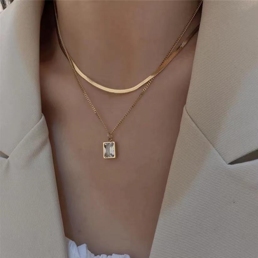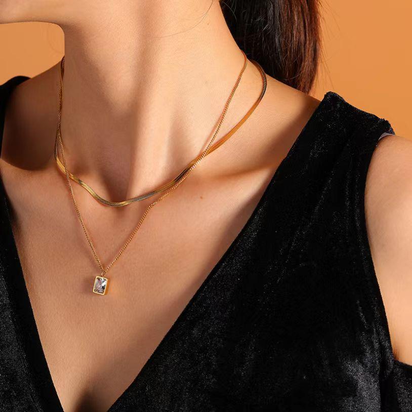 Collar de clavícula apilado de doble capa simple europeo y americano para mujer, ins hip hop fashion, estilo frío nicho, cadena de hueso de serpiente, accesorios