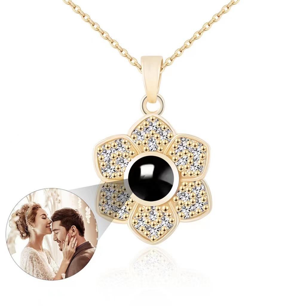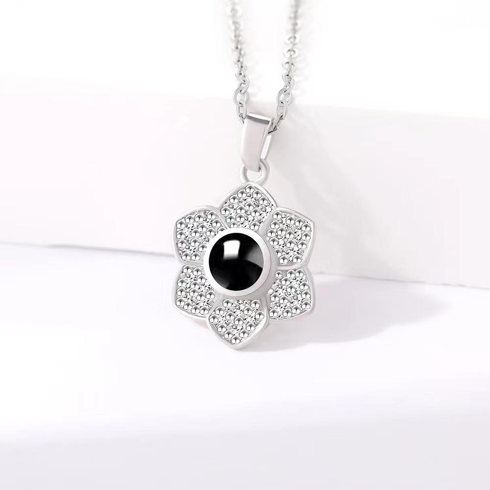 Colgante de copo de nieve de seis pétalos con diamantes y proyección en miniatura, fotos personalizadas, 100 idiomas, te amo, artículos de venta caliente transfronteriza