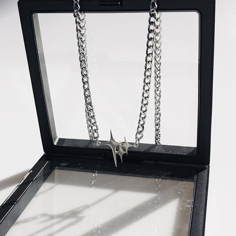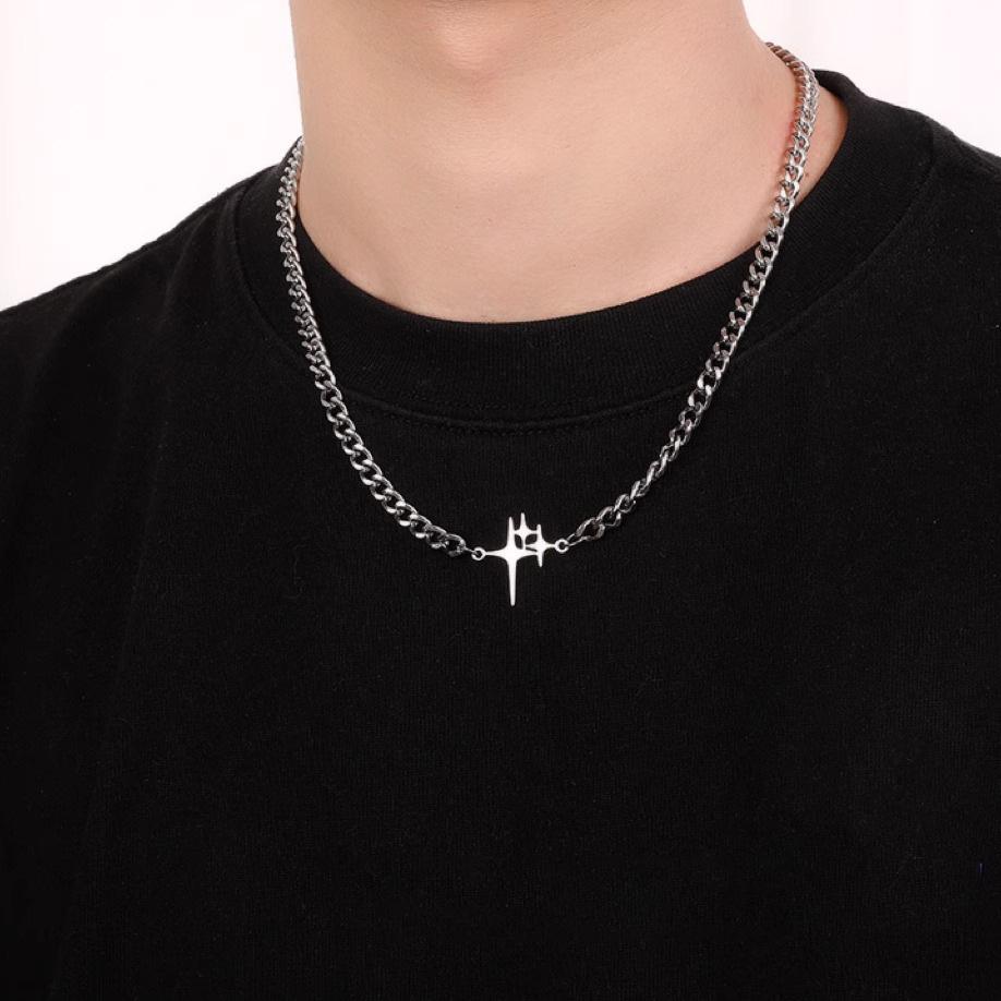 Collar de Estrella de Moda Cadena Cubana Hip-Hop de Moda Cadena Clavicular que no se Desvanece Colgante de Cruz Estrella para Camiseta de Hombre y Mujer