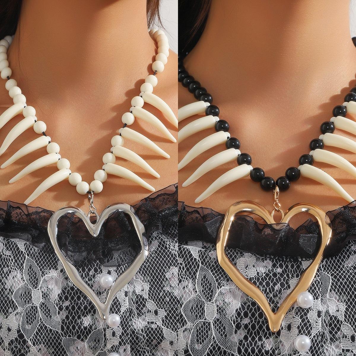 Collar con colgante de amor grande de metal exagerado transfronterizo de Europa y Estados Unidos, joyería para mujer con lazo de perlas de imitación de temperamento dulce, fabricantes de joyas para mujer