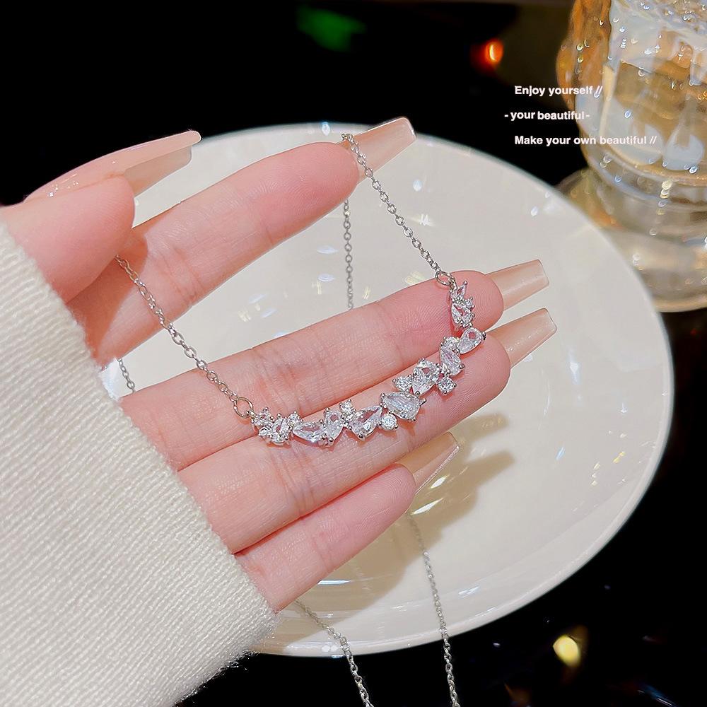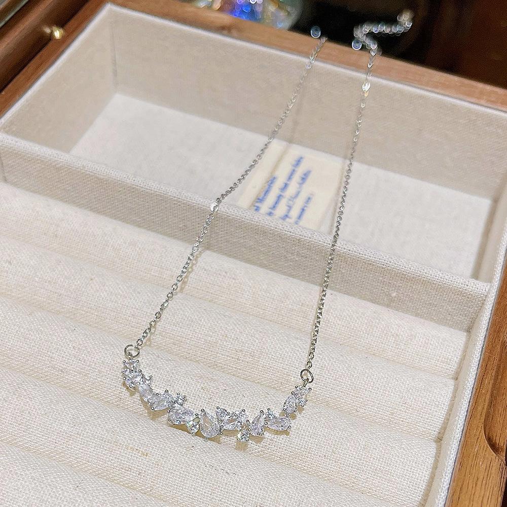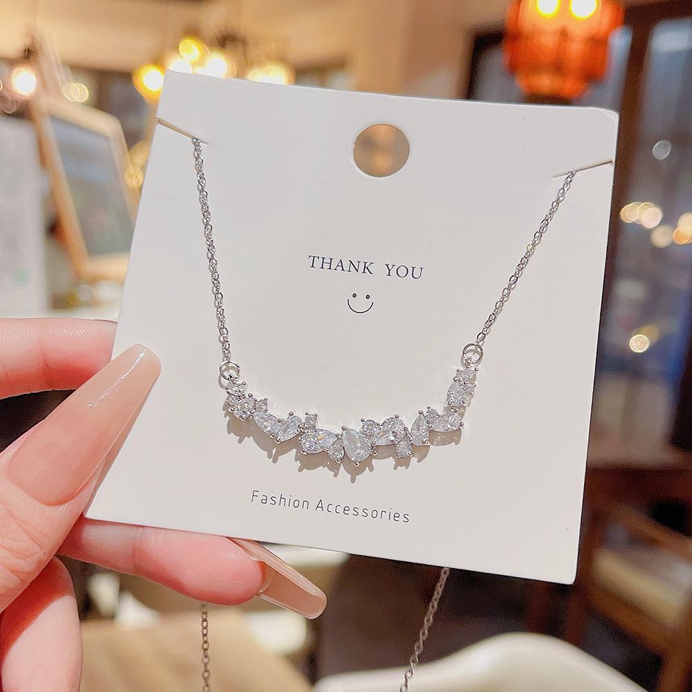 Colgante Geométrico de Zirconio Ultra-Flash Personalizado Collar Versátil de Lujo Ligero Diseño de Nicho Cadena para Clavícula Collar de Moda Dulce