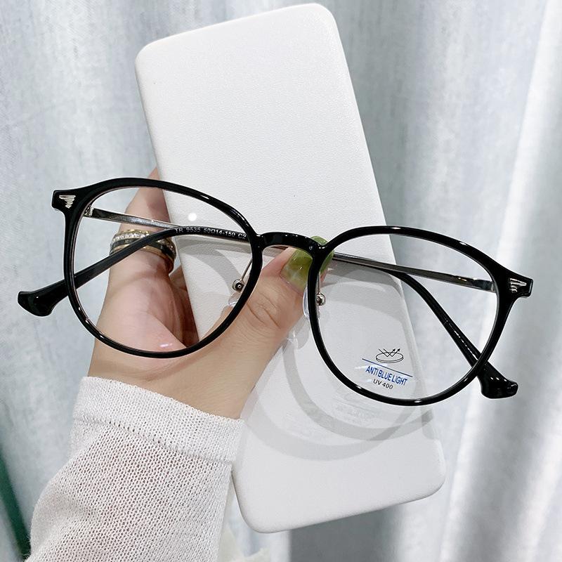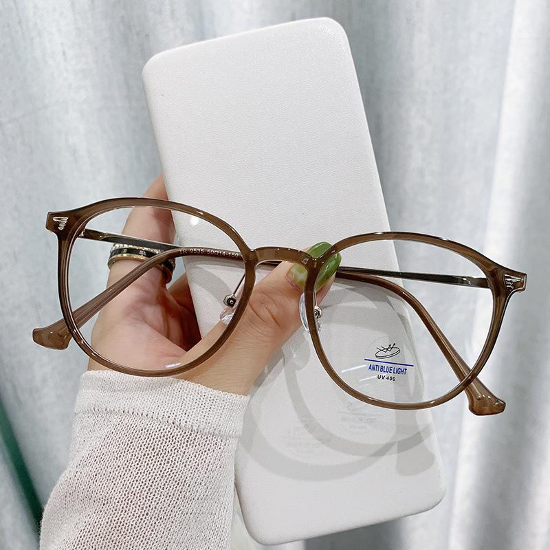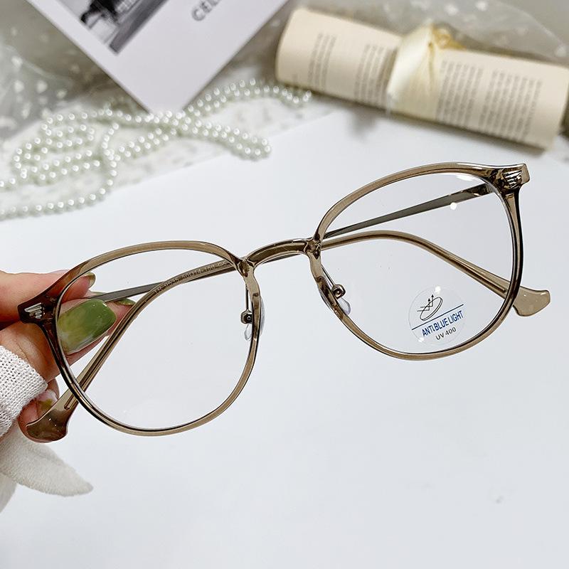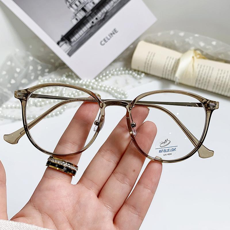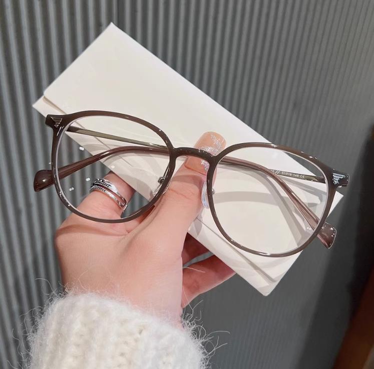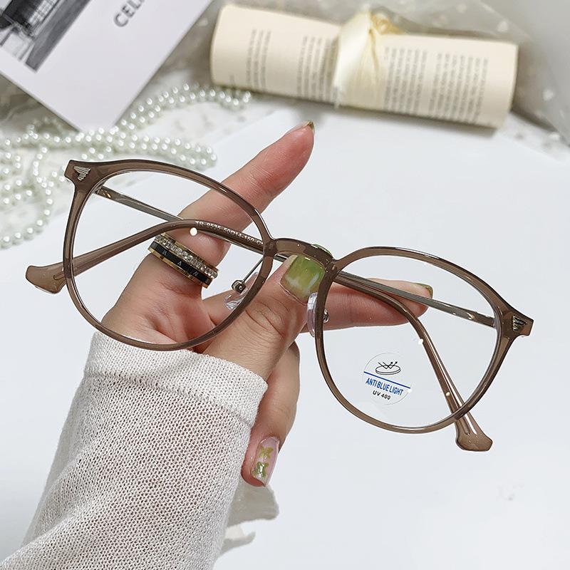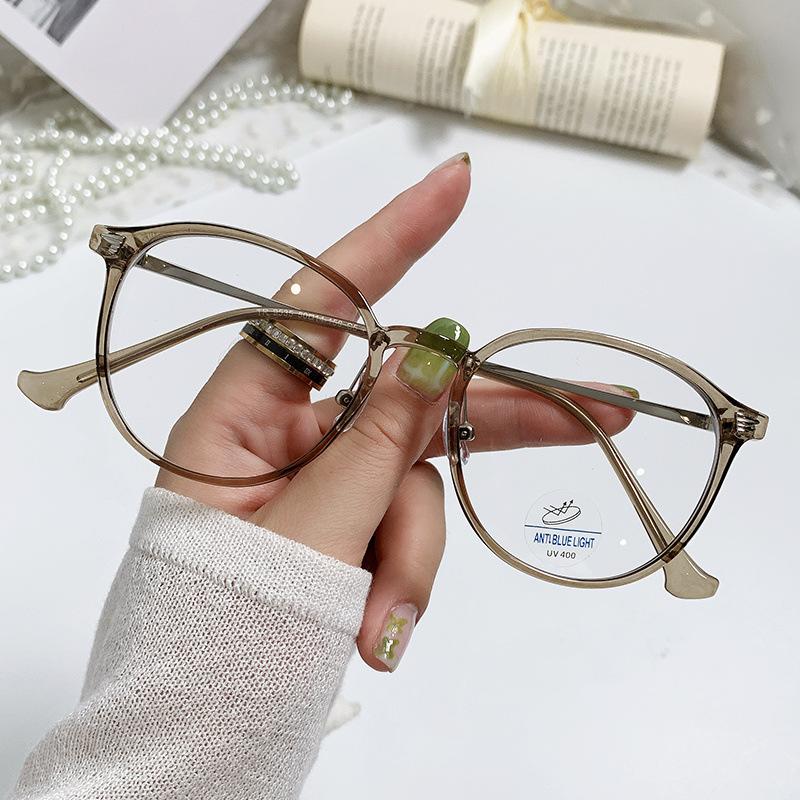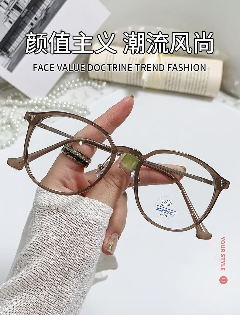 Nuevas gafas de moda antiazules para celebridades de Internet, gafas lisas para té frío, gafas para miopía con acabado ovalado para estudiantes.