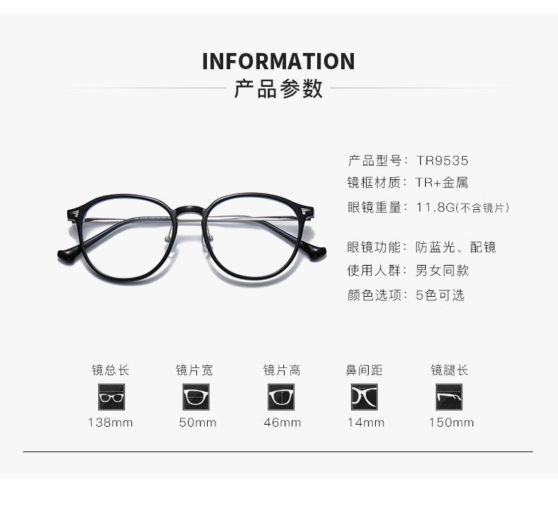 No degree anti-blue light, Myopia -50, Myopia -100, Myopia -150, Myopia -200, Myopia -250, Myopia -300, Myopia -350, Myopia -400