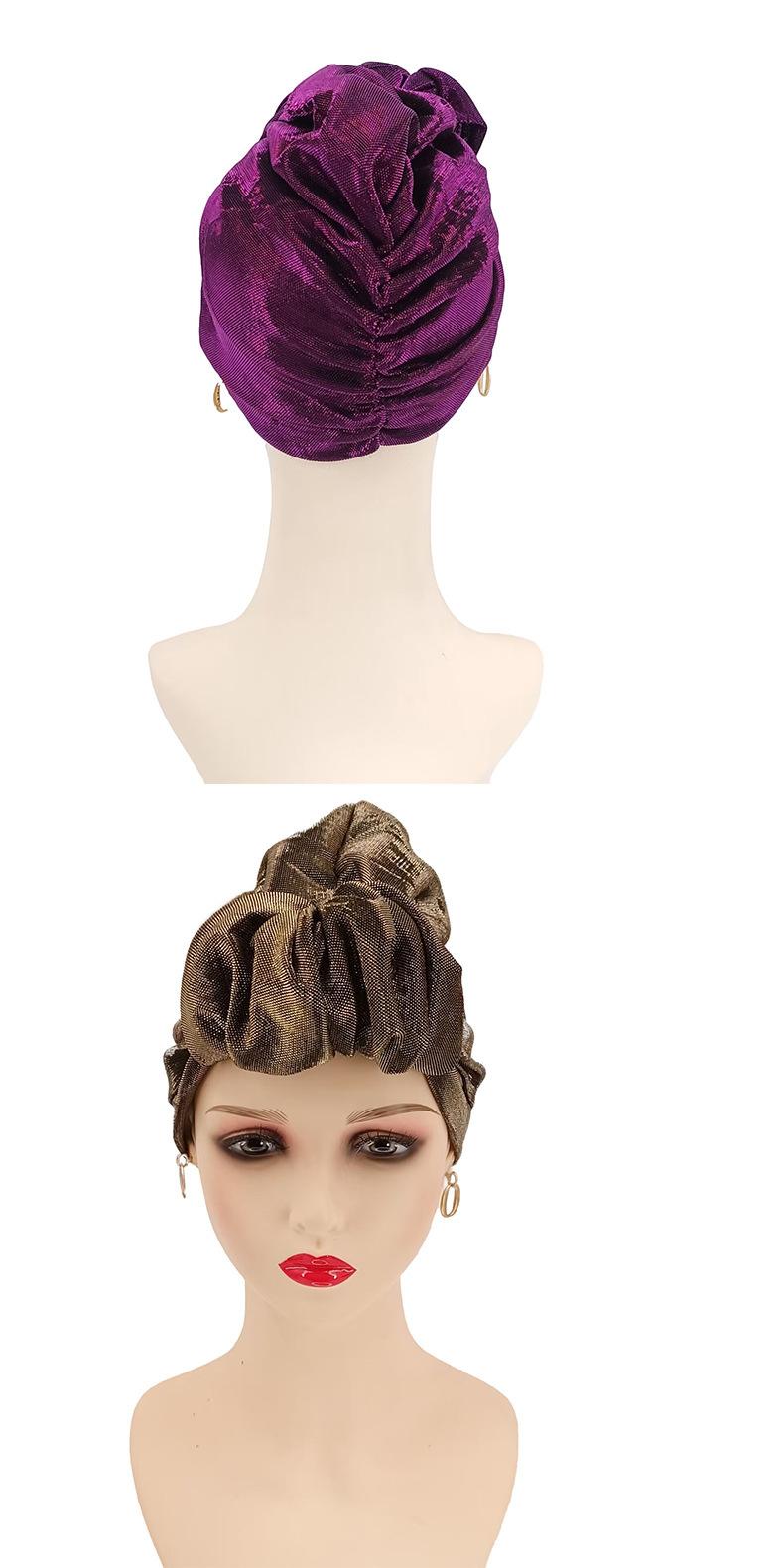 Sombreros Musulmanes Transfronterizos Nuevo Estilo Tela de Seda Brillante Frente Plisado Turbante Indio Sombrero Pequeño Venta Directa de Fábrica Venta al por Mayor