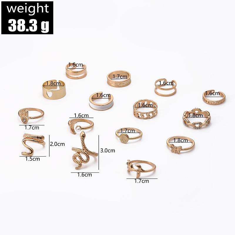 Venta Caliente Transfronteriza Estilo Europeo y Americano Anillo de Mariposa Perla Diamante Personalizado Rosa Serpiente Juego de 15 Piezas Anillo para Articulación