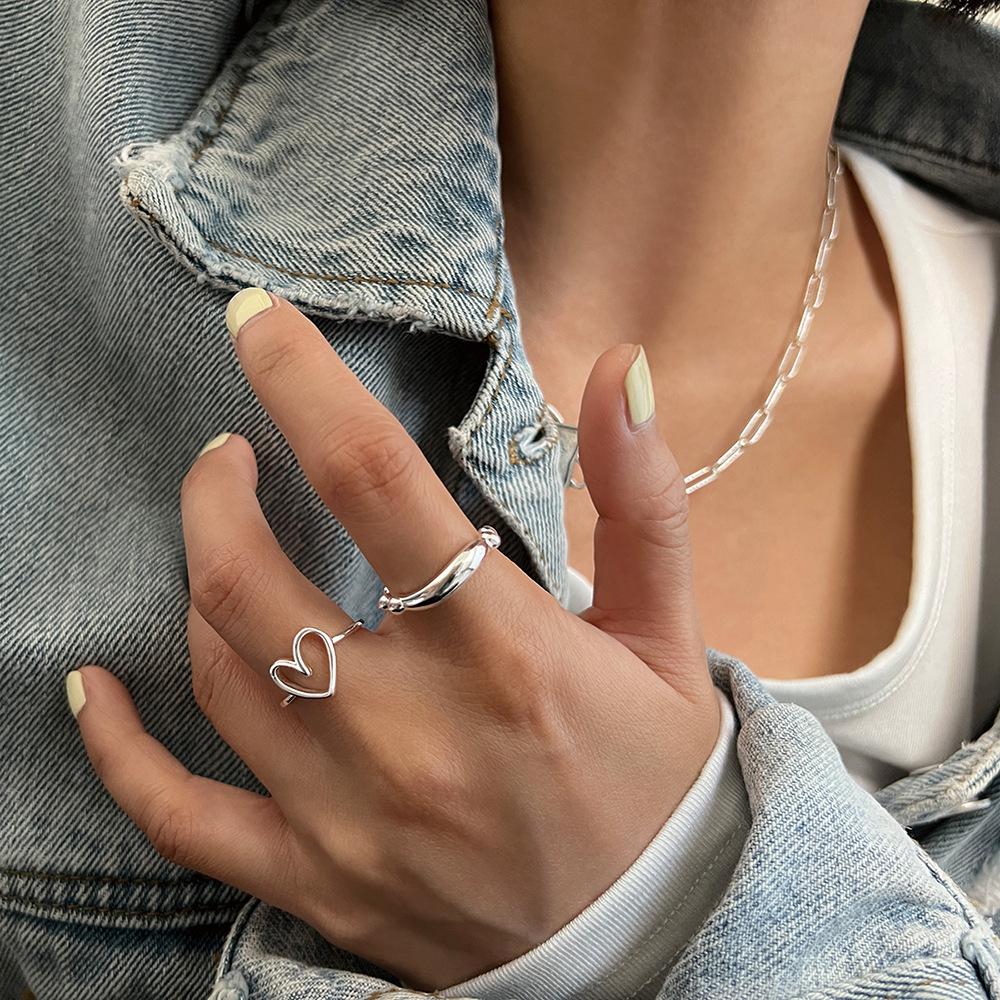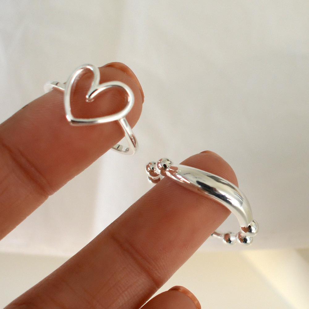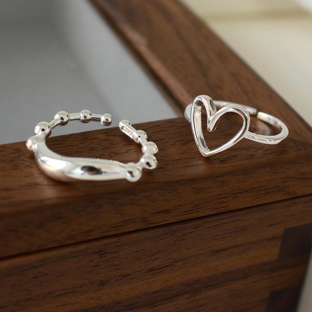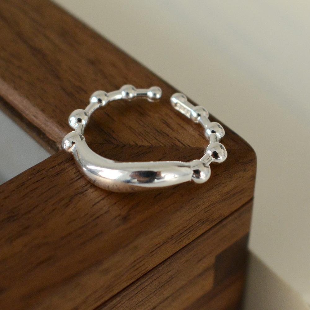 Anillo simple de plata S925 estilo coreano con cuentas, estilo retro, geométrico, irregular, abierto, estilo hip-hop.